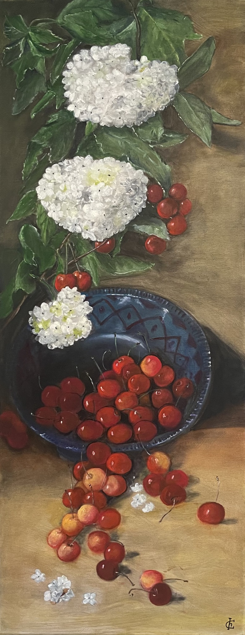 Hortensia's vindt Irina super mooi en daardoor geinspireerd kwam dit hortensia ensemble met kersen tot stand