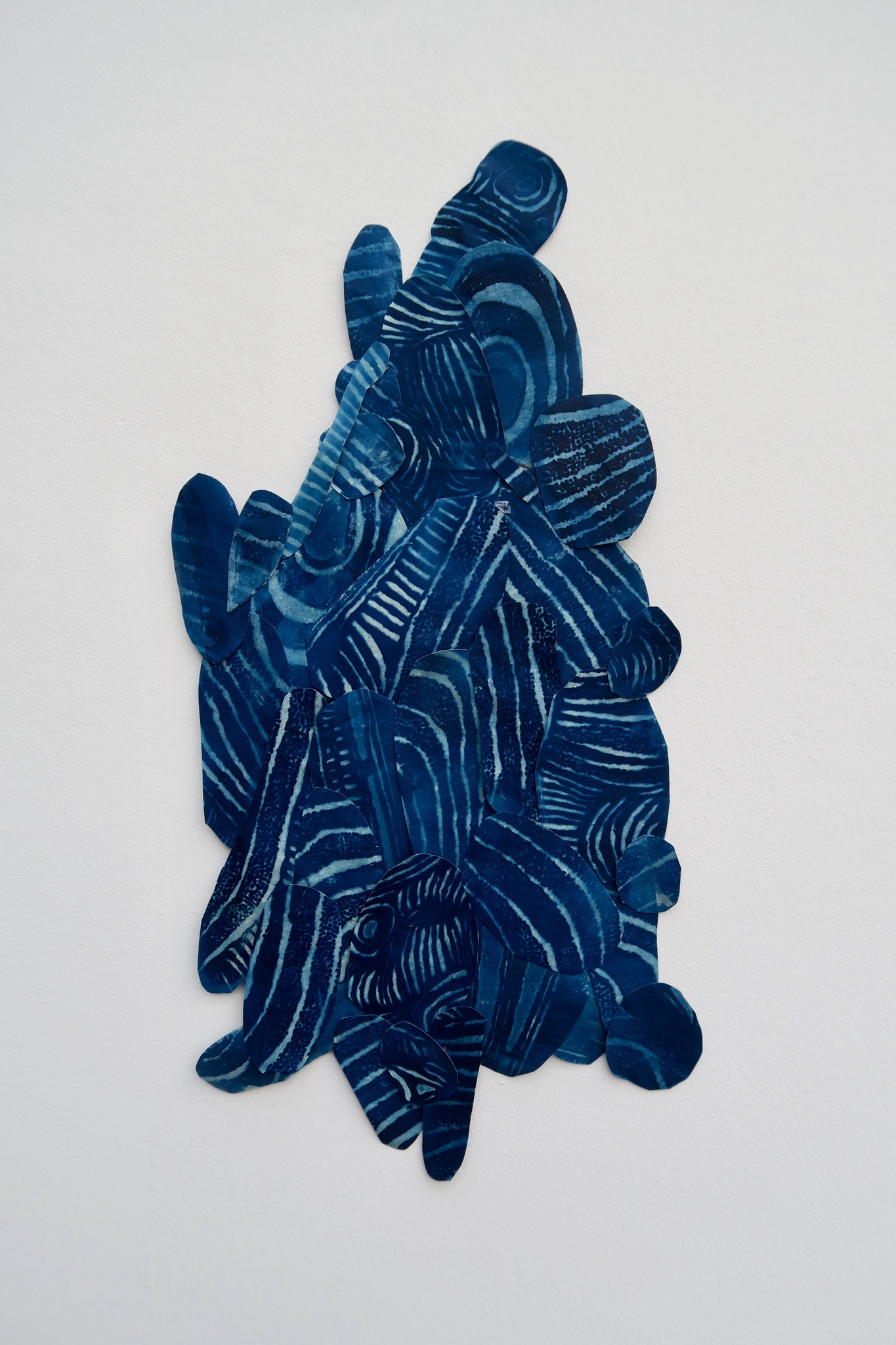 Wit Blauw Abstractie Collage Ruimte Muur Cyanotype