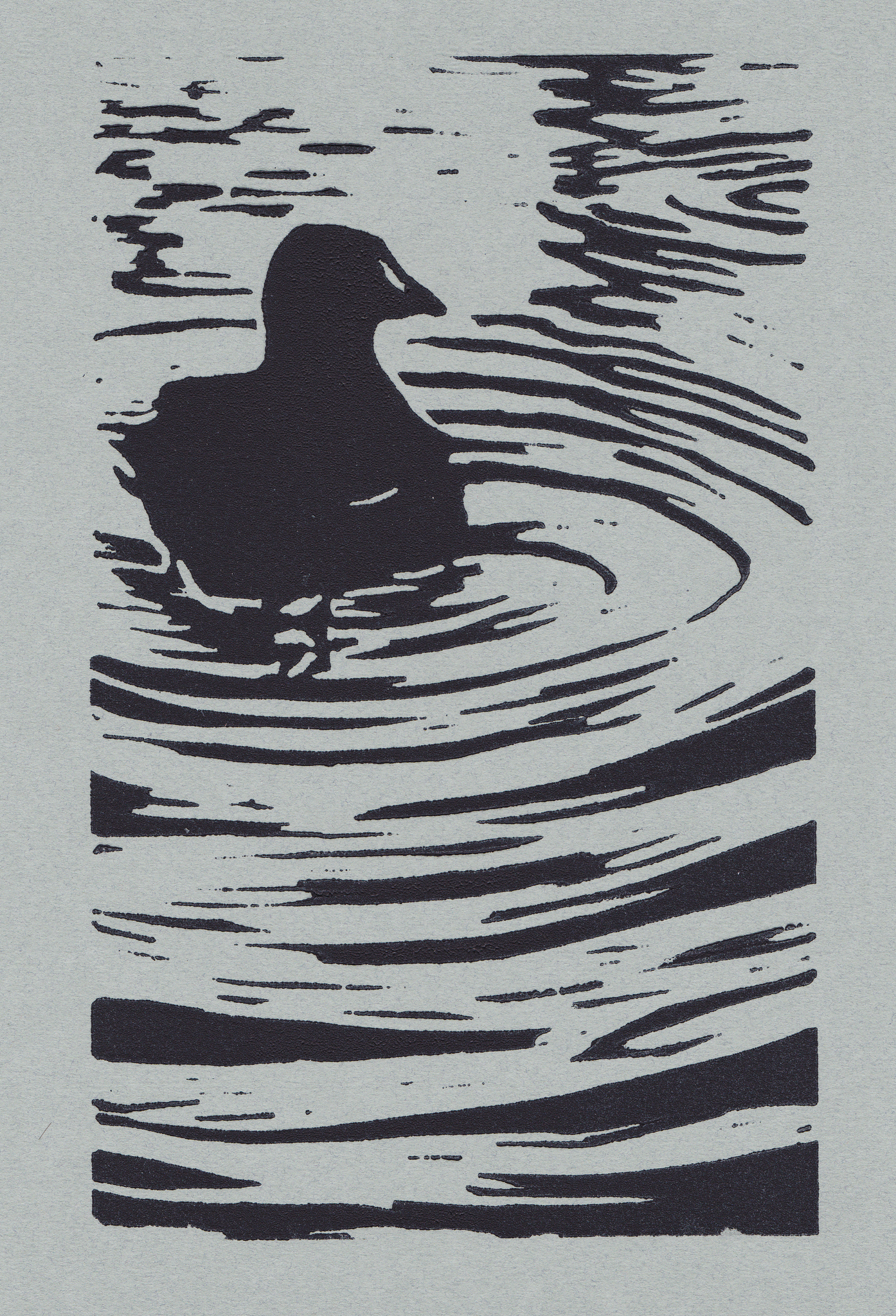 Waterhoentje Kringen In Het Water Linoleumsnede Vogel