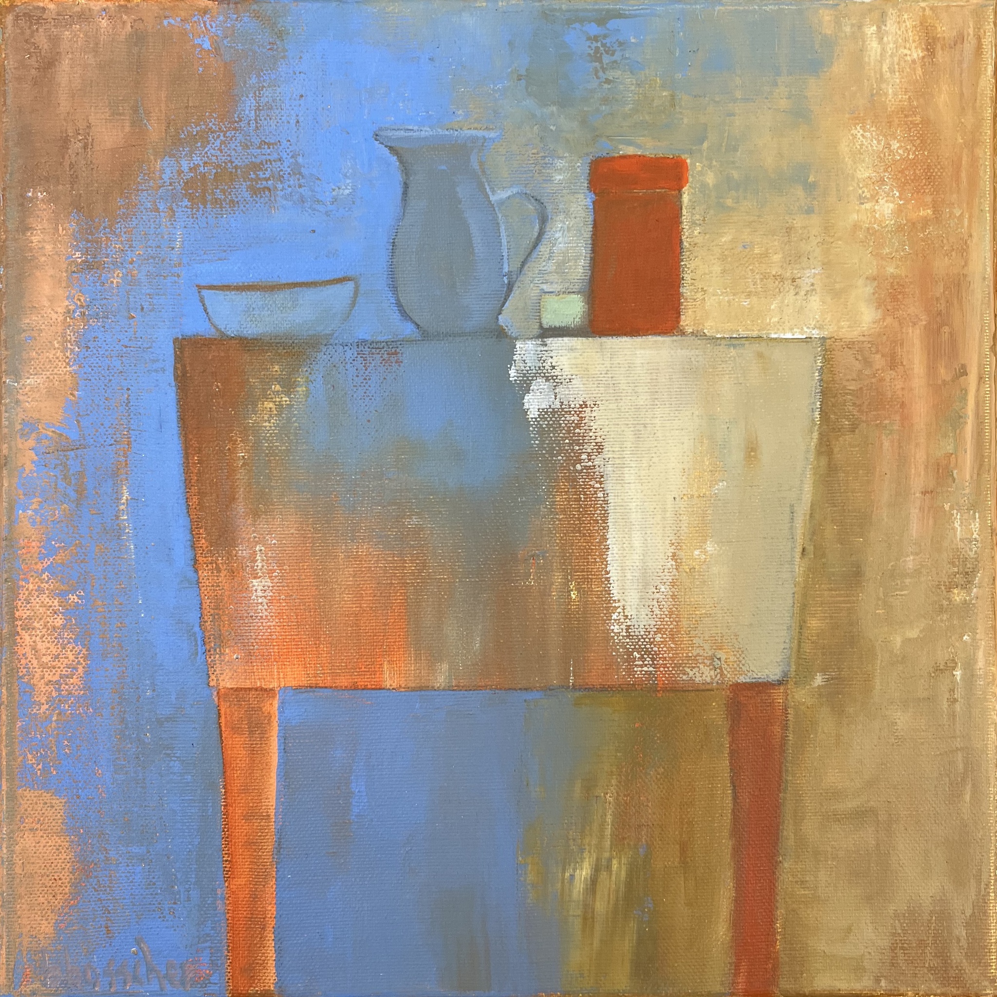 Wat betekent schilderen voor mij. Het is een uitdaging om het witte doek te temmen . Het met kleur bespelen , gebruikmakend van andere materialen zoals verband , krantenpapier , zand en druksels. Het begint met kleurlagen over elkaar , zodat de onderste lagen terug te vinden zijn in het uiteindelijke werk. Al doende ontwikkeld zich iets , het vormt zich , een beeld of gedachte wordt zichtbaar .