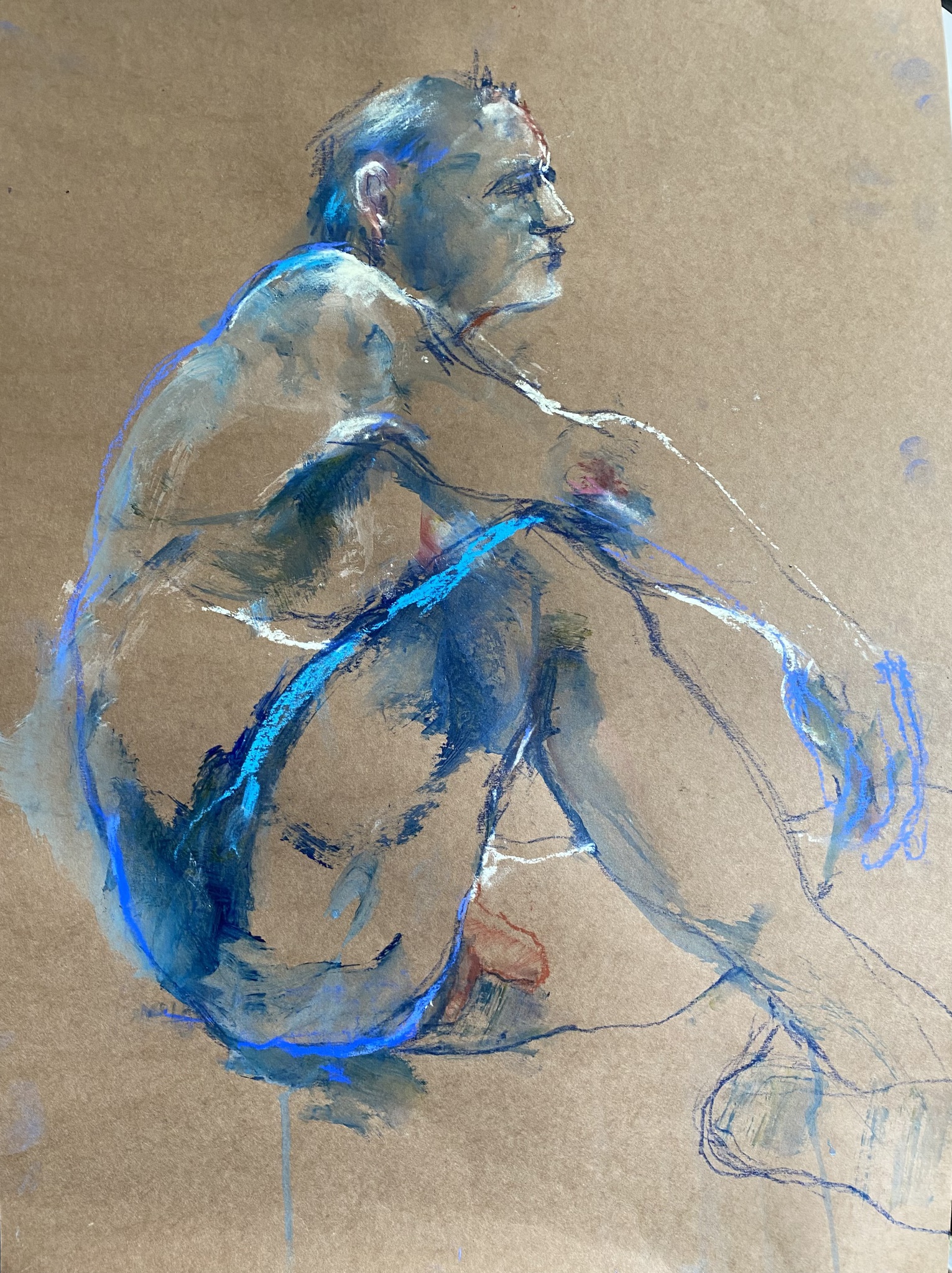 Piet, mannelijk naakt, gemengde techniek op kraftpapier.