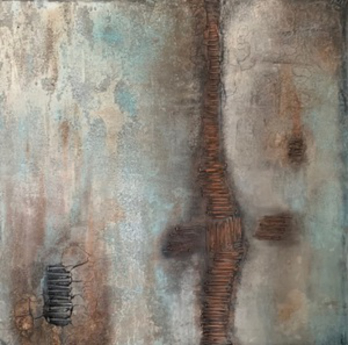 José Leenders-Smits vertelt haar verhaal in haar eigenkunstzinnige werk. Ze schrijft en vertaald haar emoties kleurrijk op een doek met verschillende materialen. Smits Crea Art Kunst en Beleving