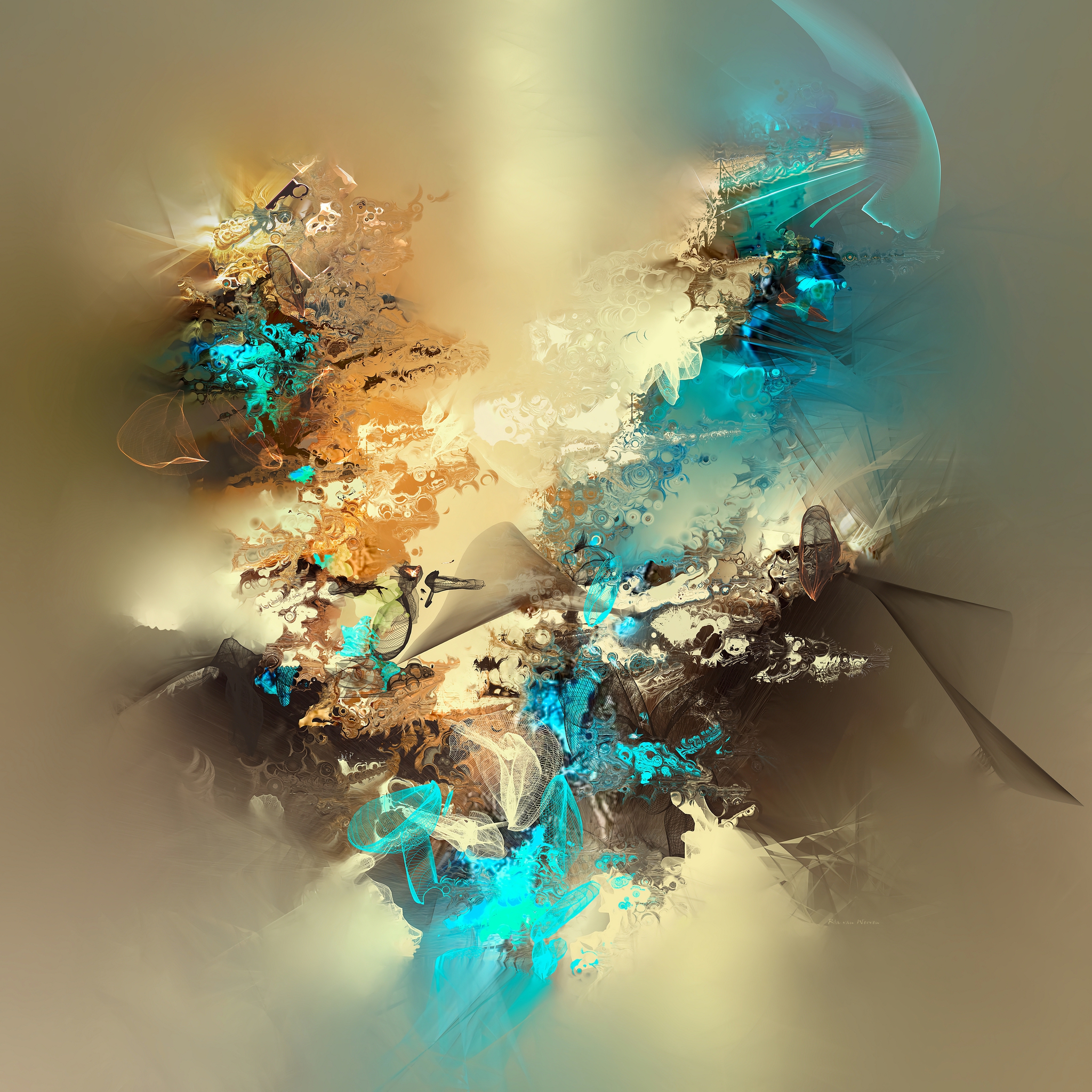 Blauw Beige Digital Art Abstract Brokstukken Bruin Naturel