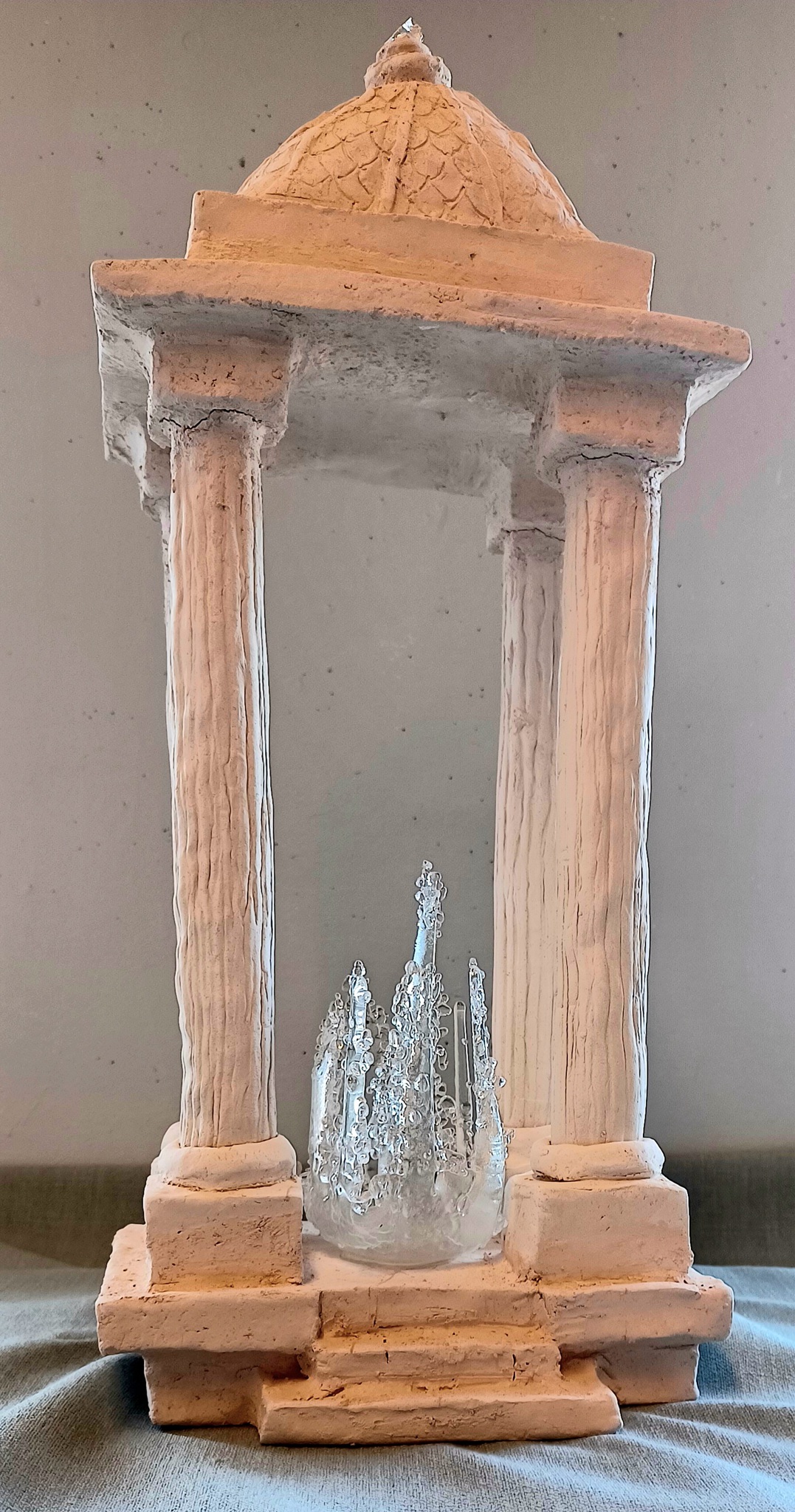 Tempel van keramiek gecombineerd met glas. Ode aan de Zuivere Bron in onszelf.
