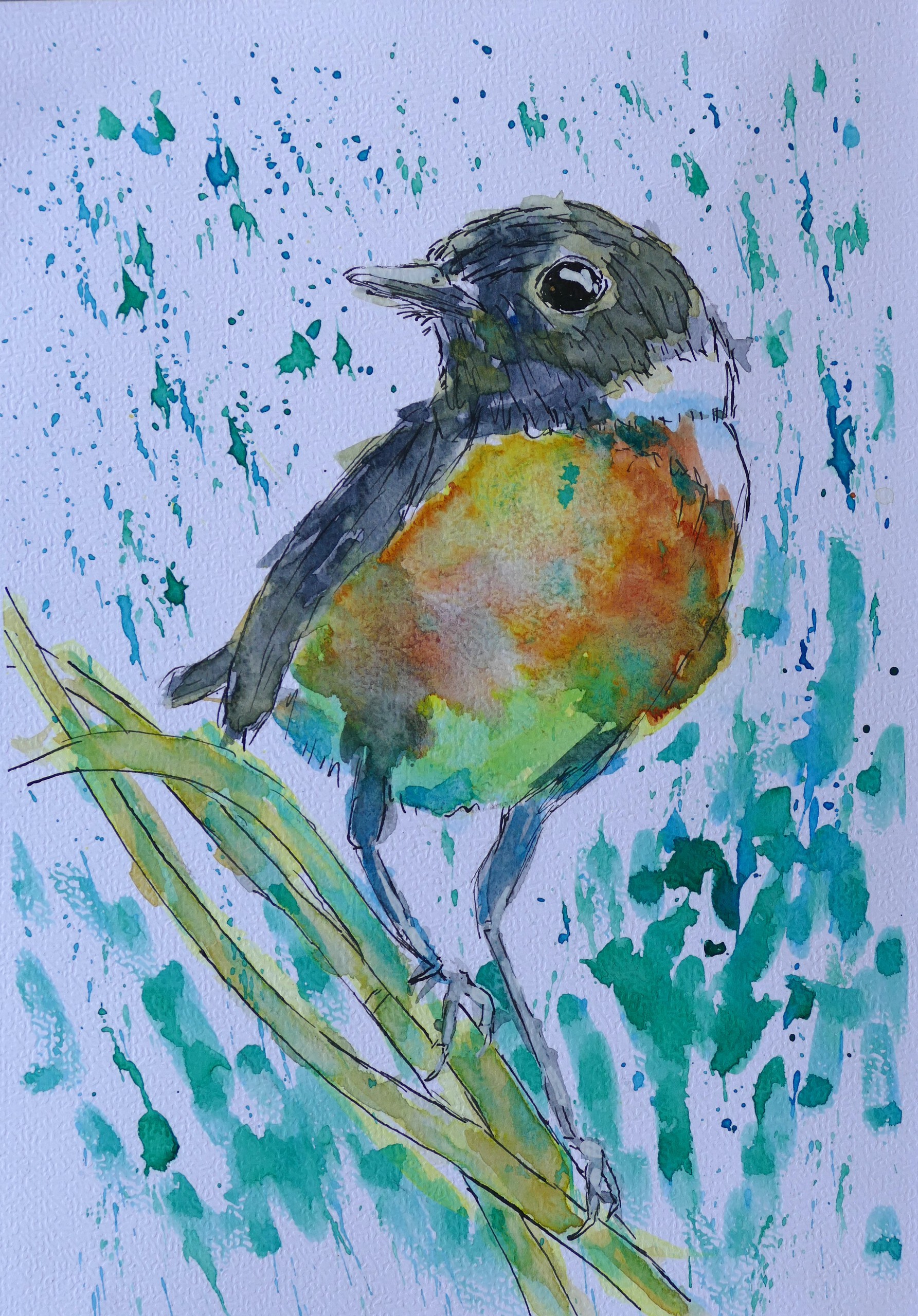 Aquarel Vogels Roodborsttapuit