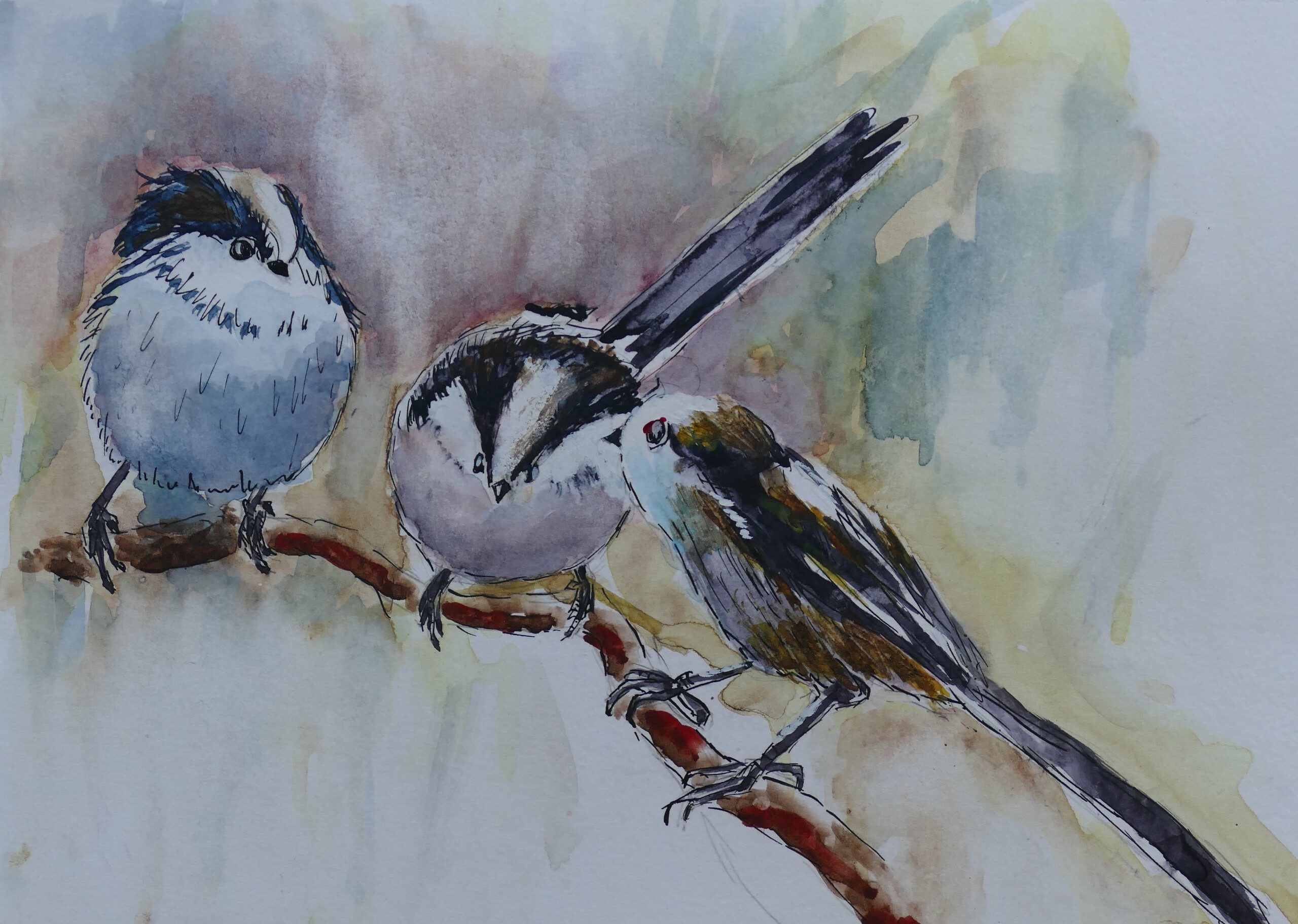 Staartmees Aquarel Vogels