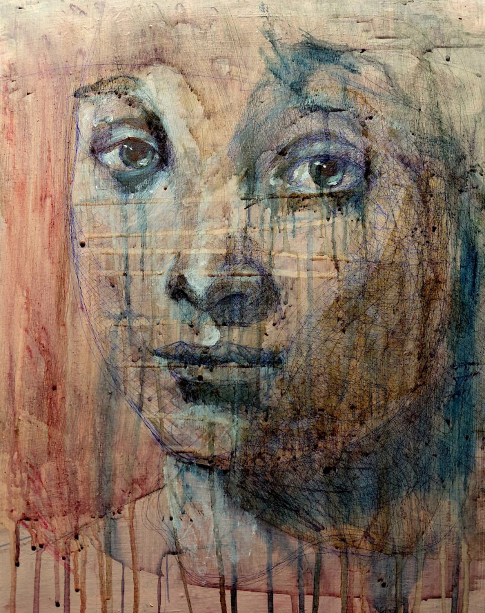 Een gezicht dat niet geschilderd lijkt, maar langzaam herinnert wordt — lijn na lijn, laag na laag, tot het hout begint te fluisteren wie het ooit was.