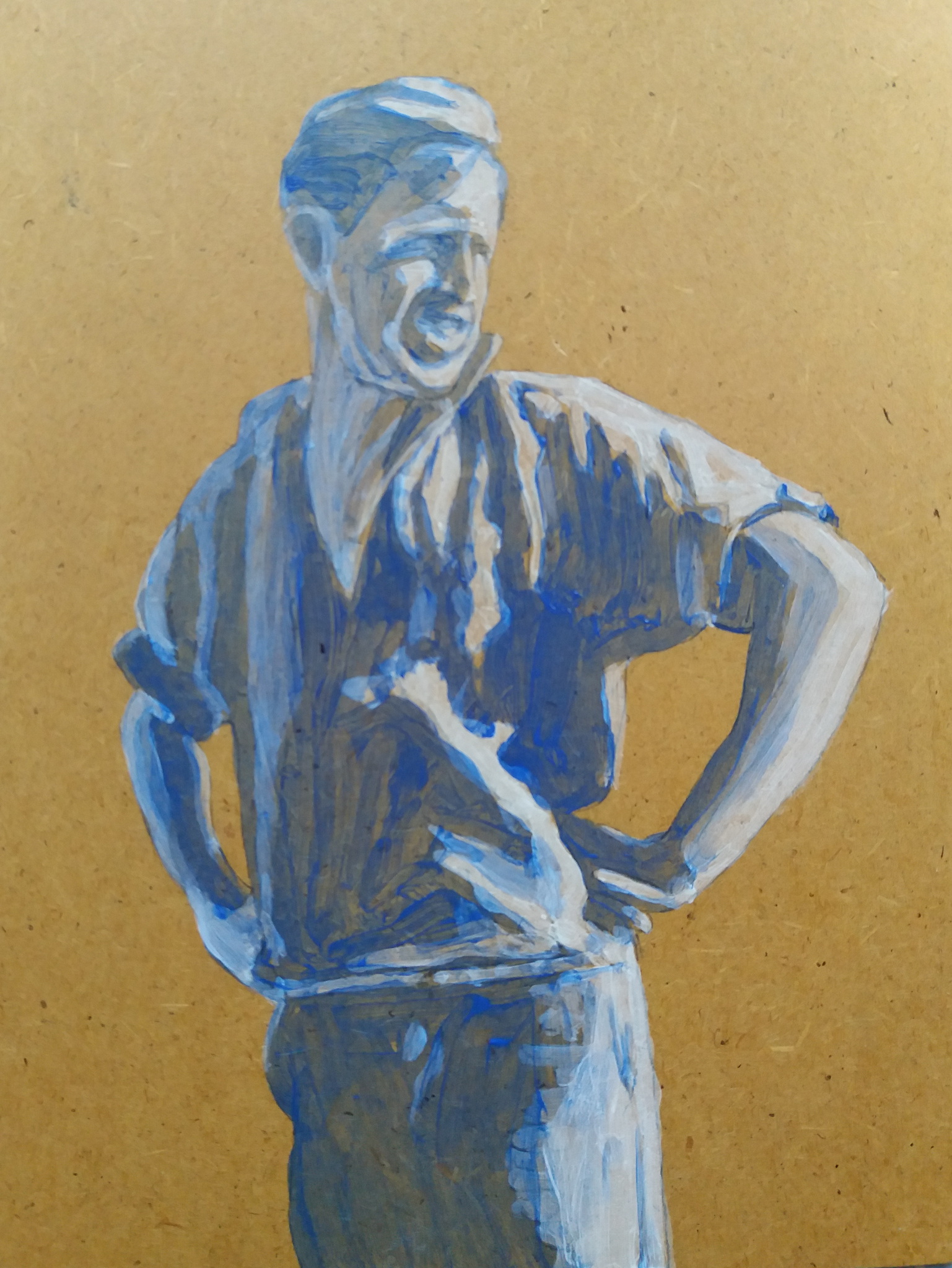 Kleine charmante werken op paneeltjes vaak A4-formaat. Portretten, bloemen, stillevens van fruit, glaasjes, doorkijken in het bos, een zicht met wachtende figuren….