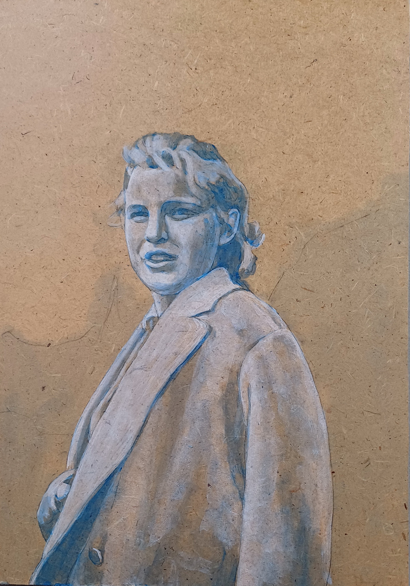 Kleine charmante werken op paneeltjes vaak A4-formaat. Portretten, bloemen, stillevens van fruit, glaasjes, doorkijken in het bos, een zicht met wachtende figuren….