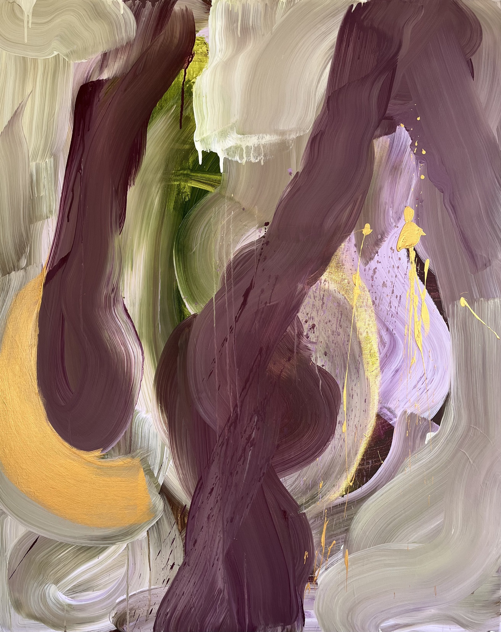 Grote, energieke penseelstreken, hier en daar komt er iets te voorschijn dat ook gezien mag worden...wellicht de kwetsbare kant van het leven?