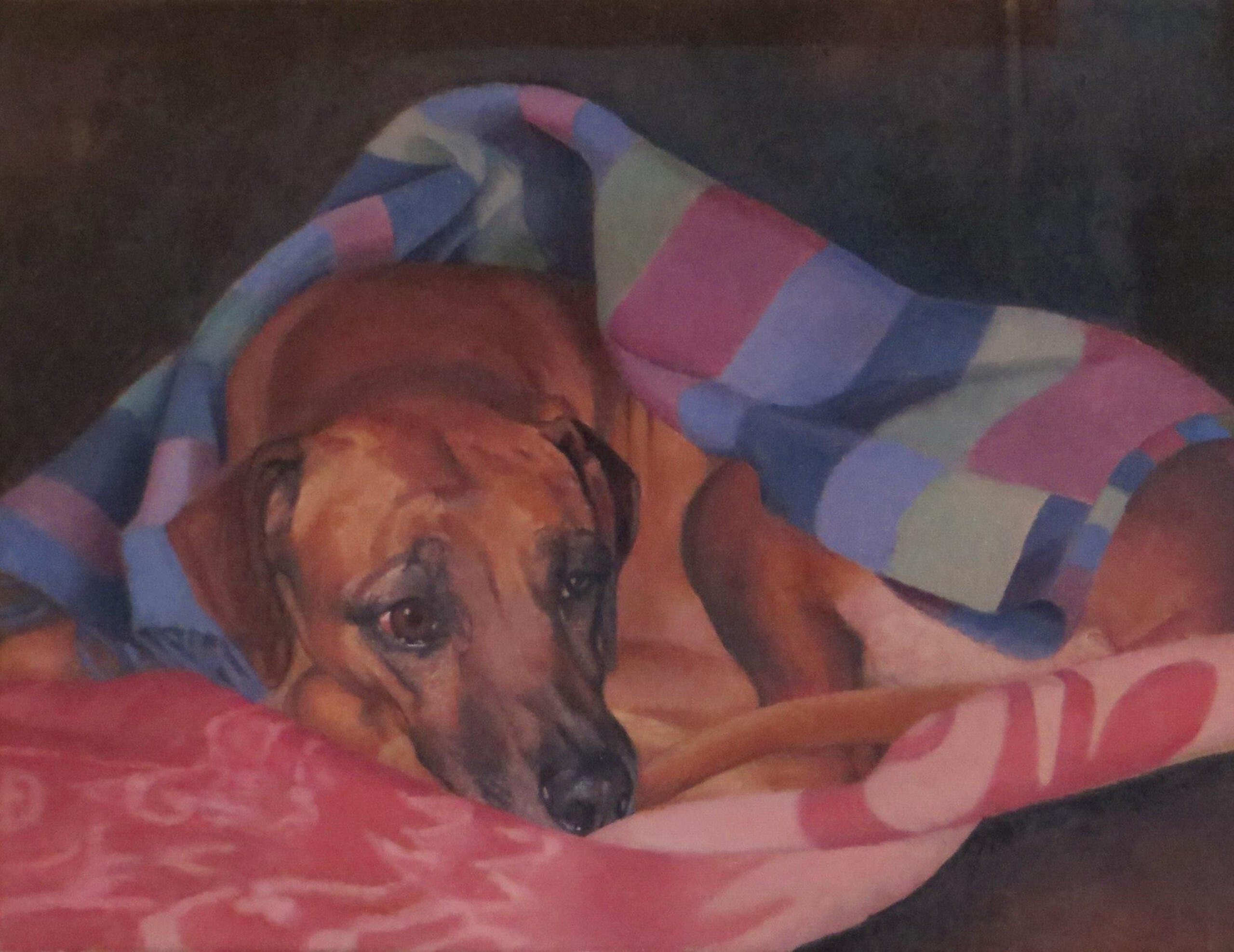 Ben van huis uit portretschilder,niet alleen van mensen - ook van dieren. Wat vaak terugkeert in mijn werk is een kind en hond slapende. Meestal gebruik ik olieverf , soms pastel en krijt.