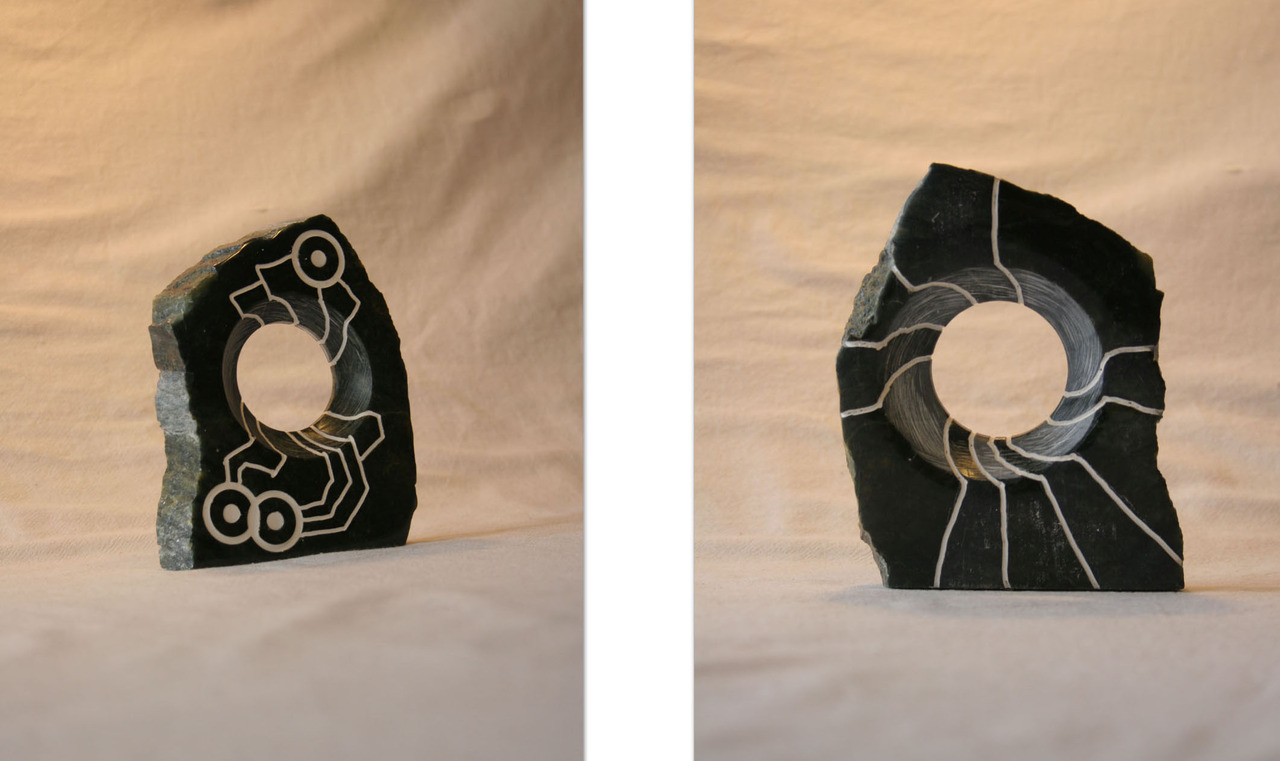 Speksteen ingelegd met witte klei.