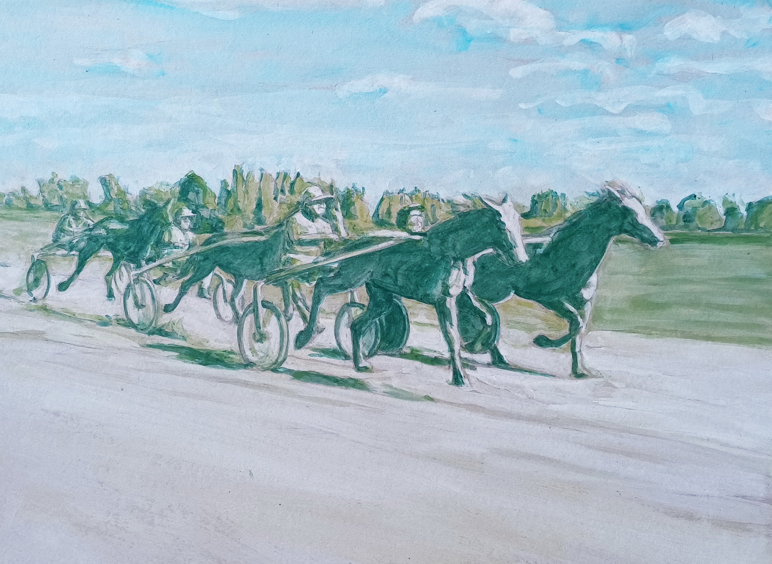Kleine charmante werken op paneeltjes vaak A4-formaat. Portretten, bloemen, stillevens van fruit, glaasjes, doorkijken in het bos, een zicht met wachtende figuren….