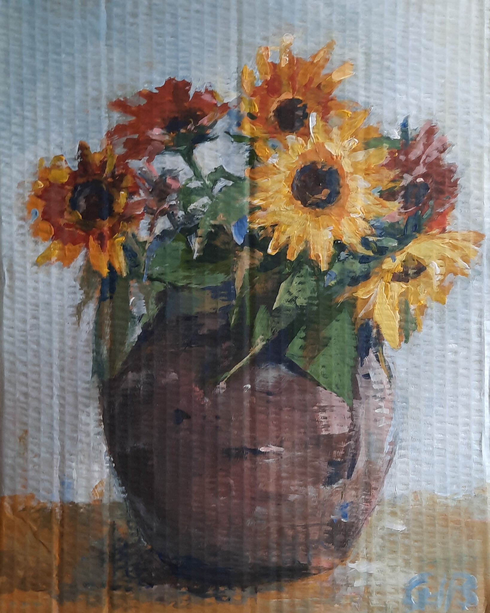 bloemen uit de Wijkse Moestuin, geschilderd op karton