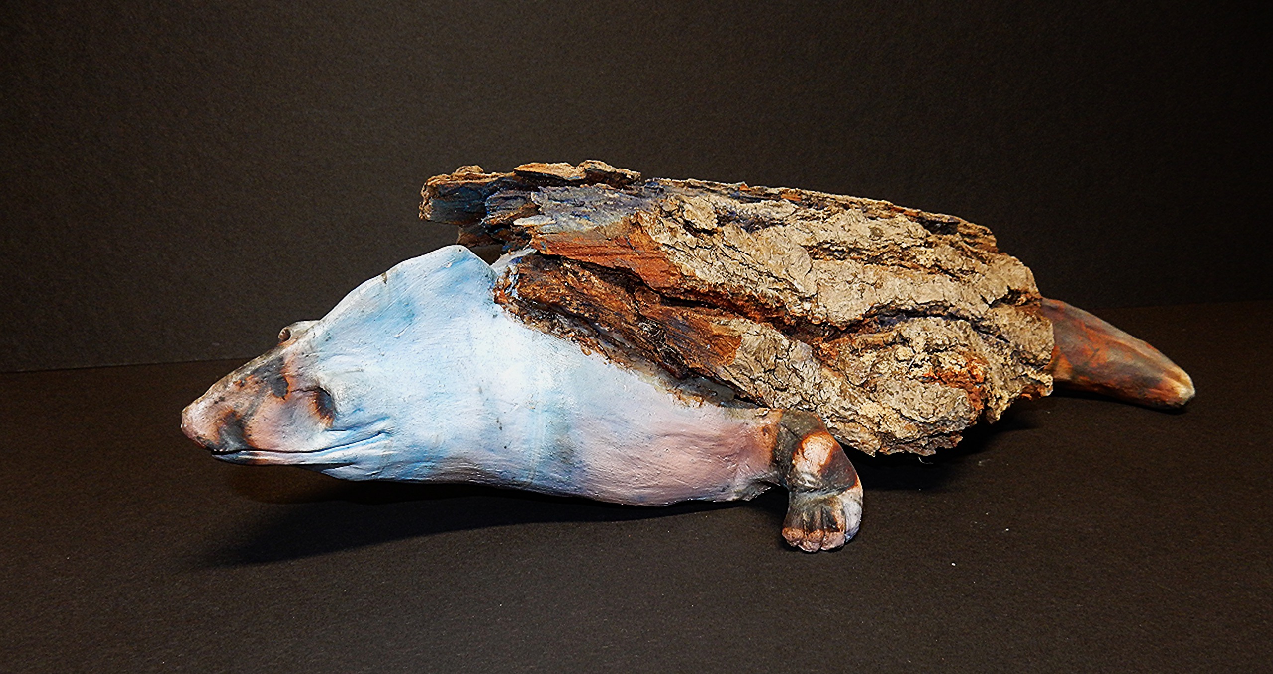 Dit fantasiebeest is gemaakt d.m.v. de saggar techniek en heeft een houten rug.