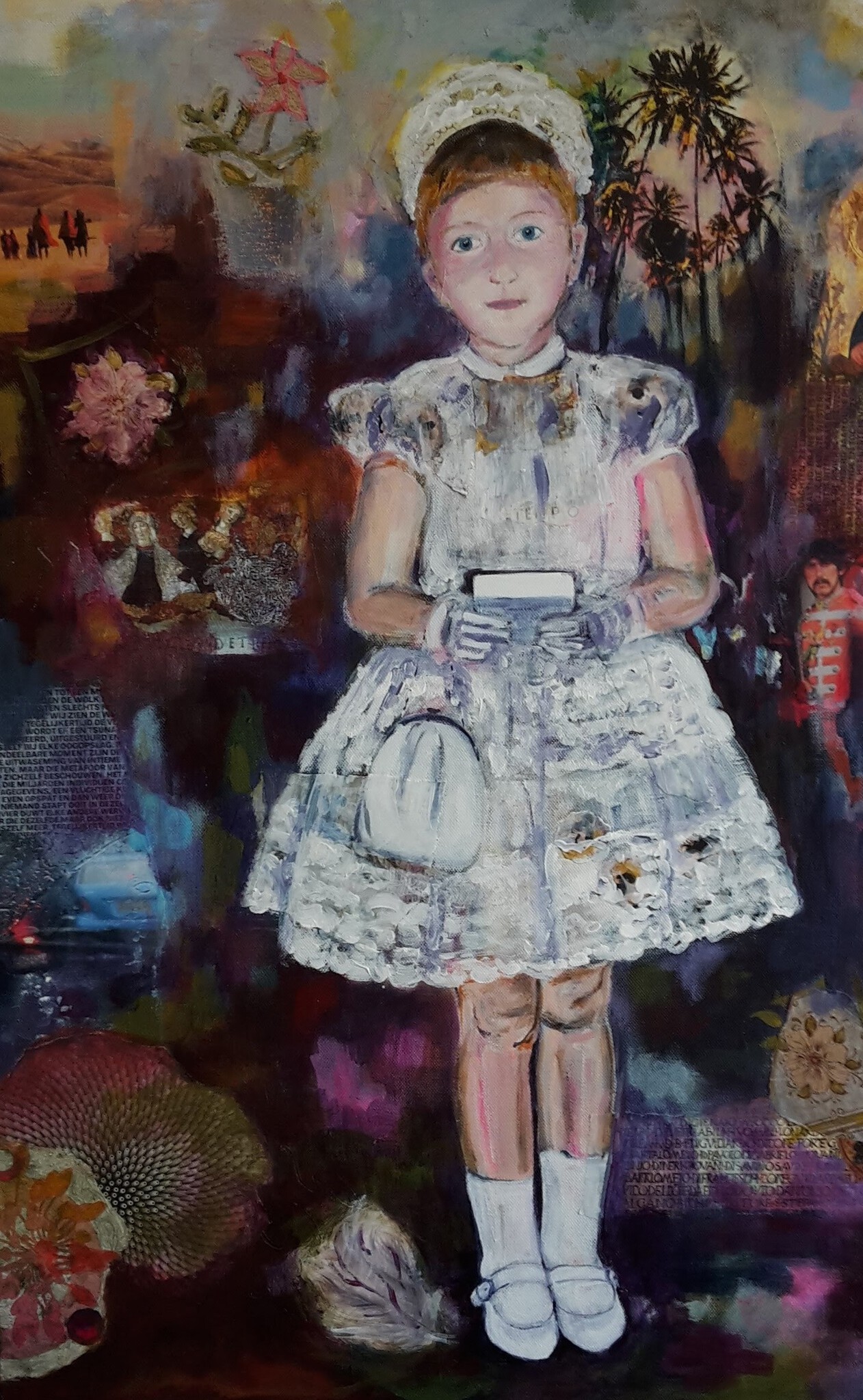 Schilderij voor Maarit. Eerste communie foto met herinneringen uit de 60ties