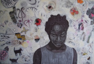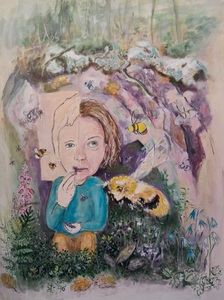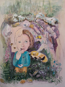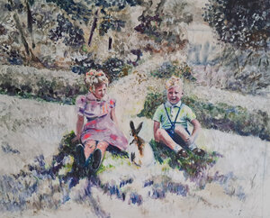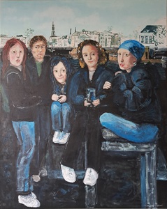 Inspiratie haal ik uit het thema herinneringen, verleden en verhalen. Familiefoto's spelen bijv. een rol in mijn werk. Ook kijk daarom naar schildertechnieken van andere schilders.
