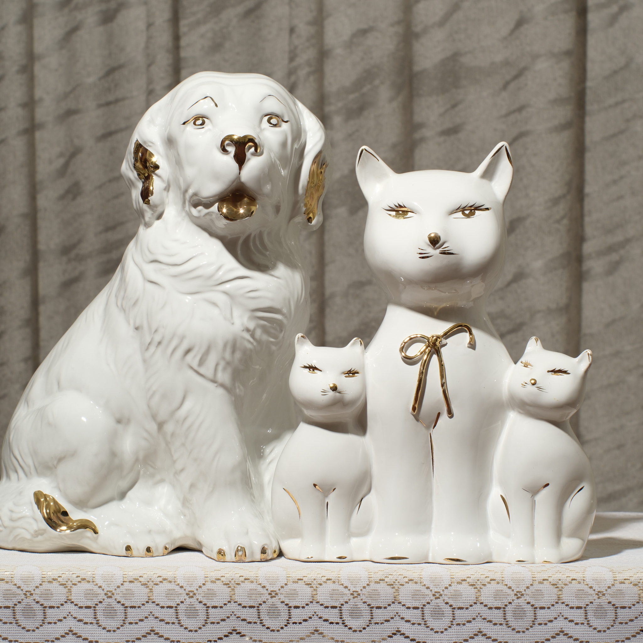 Kat Stilleven Hond Keramiek Kitsch Dualisme