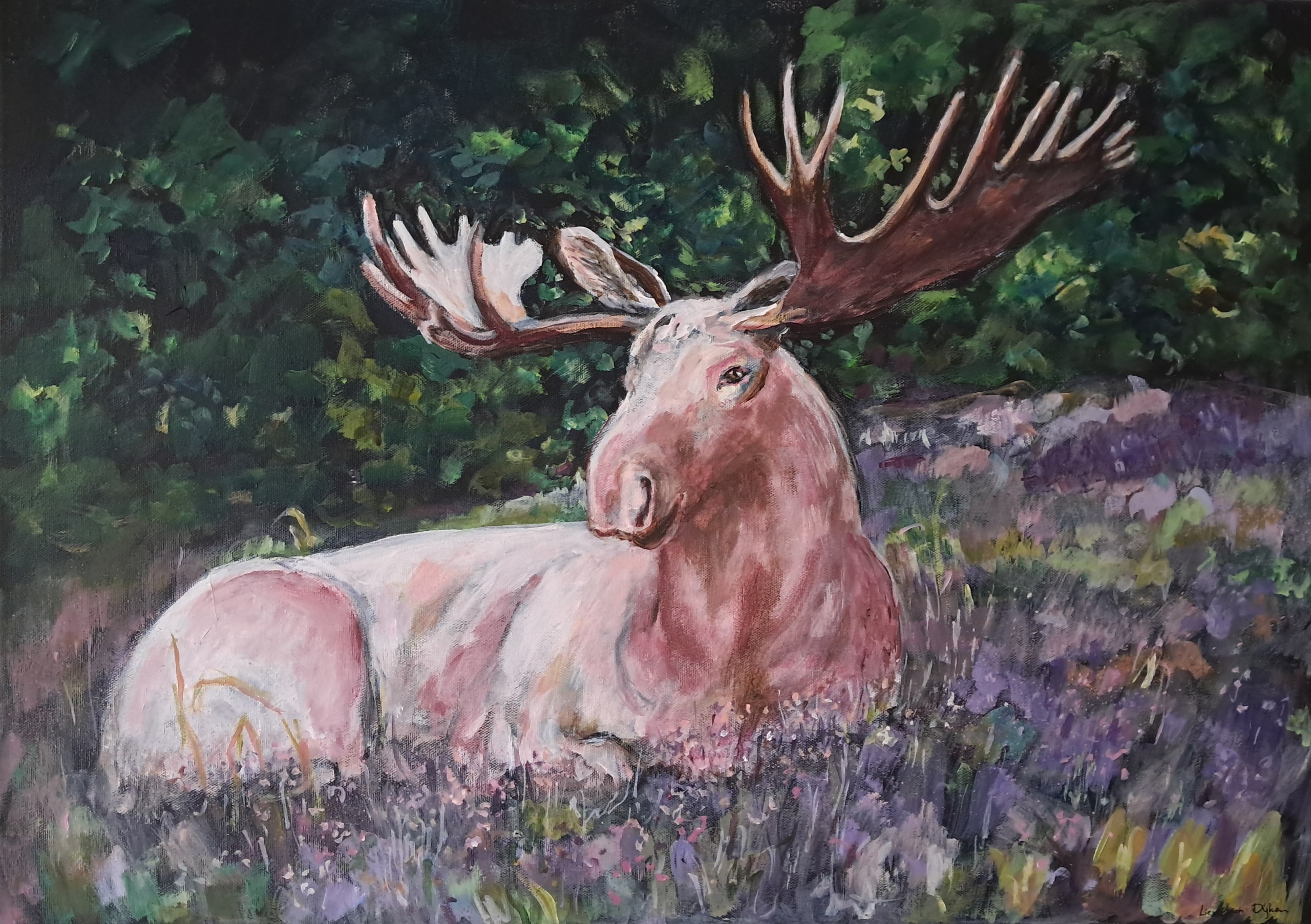 Witte eland. Magisch dier dat staat voor vrijheid en wildernis. Geschilderd voor het thema, 'Dier'. Groepsexpositie VAK in Galerie 38CC Delft