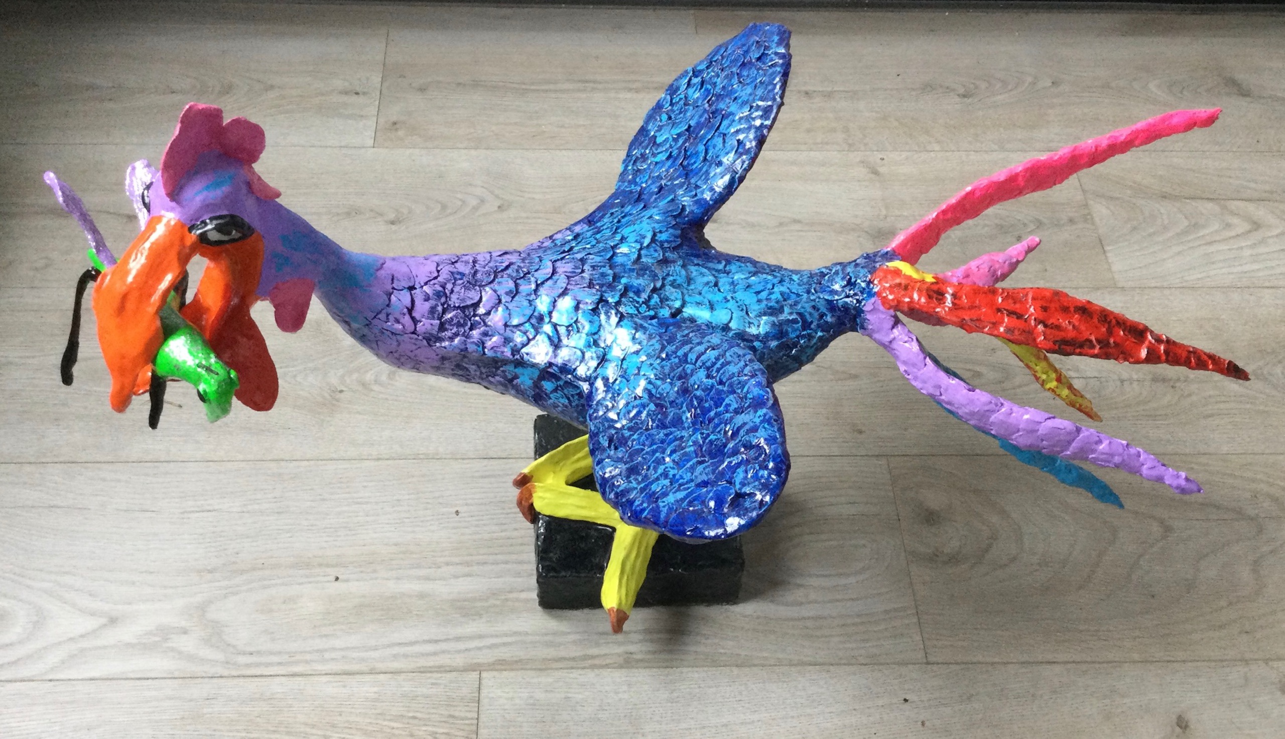 Pim van Pelt maakt vrolijke, kleurrijke en betaalbare kunst. Mensen een glimlach ontlokken is het doel. Het materiaal: keramiplast, acryl en afgewerkt met meerdere lagen epoxie.