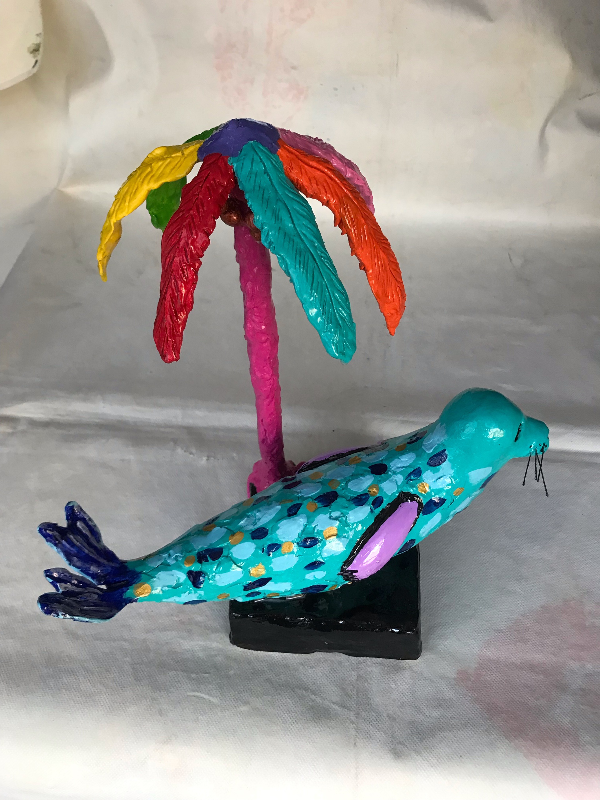 Pim van Pelt maakt vrolijke, kleurrijke en betaalbare kunst. Mensen een glimlach ontlokken is het doel. Het materiaal: keramiplast, acryl en afgewerkt met meerdere lagen epoxie.