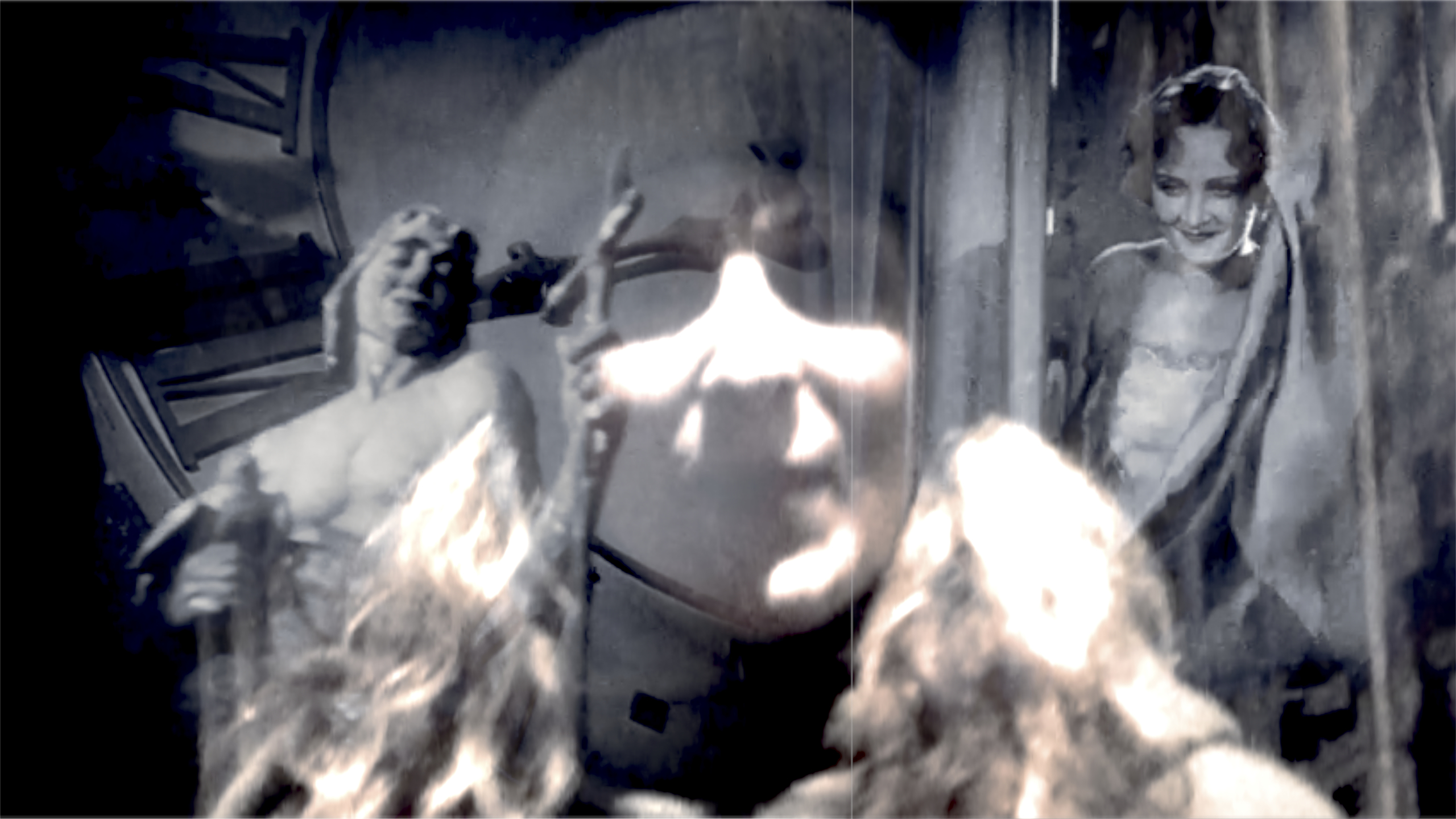 Still uit videocompositie met collageachtige videotechnieken Digitale print op Dibond 53 × 30 cm