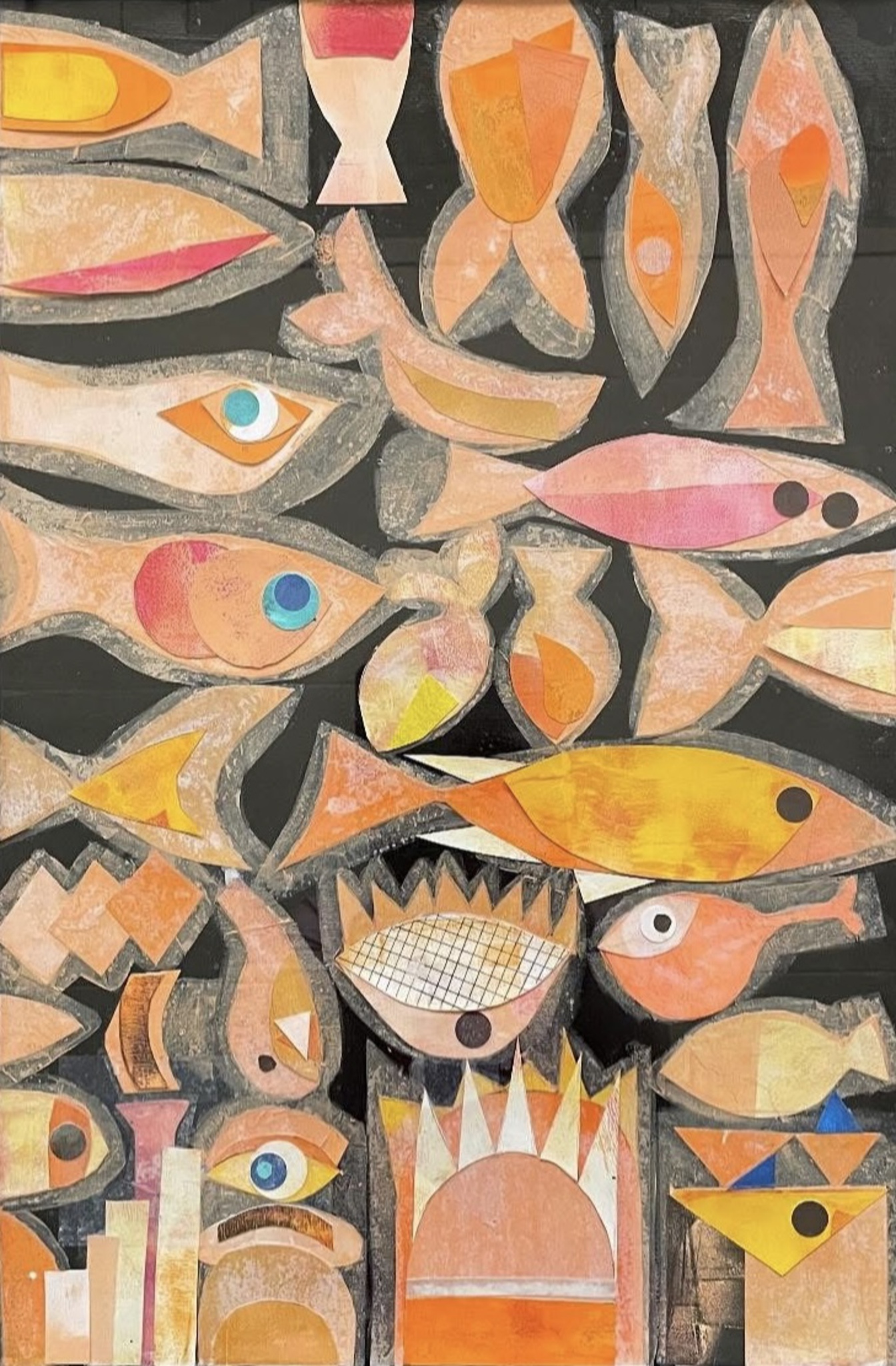 Dit werk is een experiment met eigen technieken, geïnspireerd door een schilderij van Paul Klee. Het is opgebouwd uit meerdere lagen, waarbij elk niveau bijdraagt aan een spel van kleur, vorm en textuur. Het resultaat is een gelaagde compositie waarin persoonlijke verkenning en kunshistorische inspiratie samenkomen.