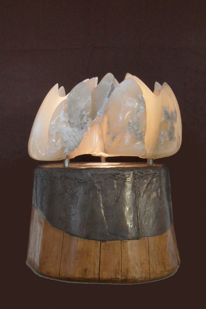 'Lotus Light' is gemaakt van Albast geplaatst op Amerikaans eiken bekleed met lood. In de voet zit een 220 V Ledlampje van 1 watt met aan/uit schakelaartje. Dus zuinig in gebruik en wordt niet warm.
