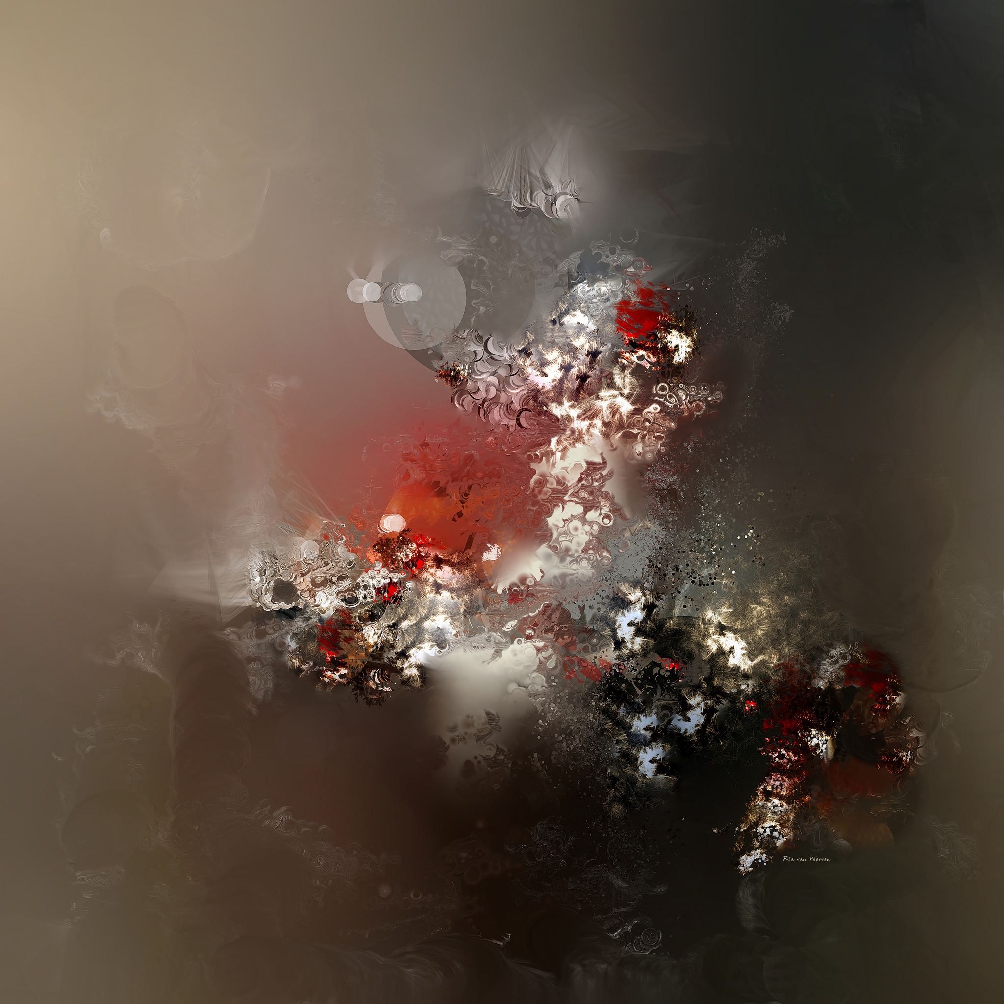 Witte Spankeling White Sparkle Abstract Wit Bruin Rood Oranje Digital Art