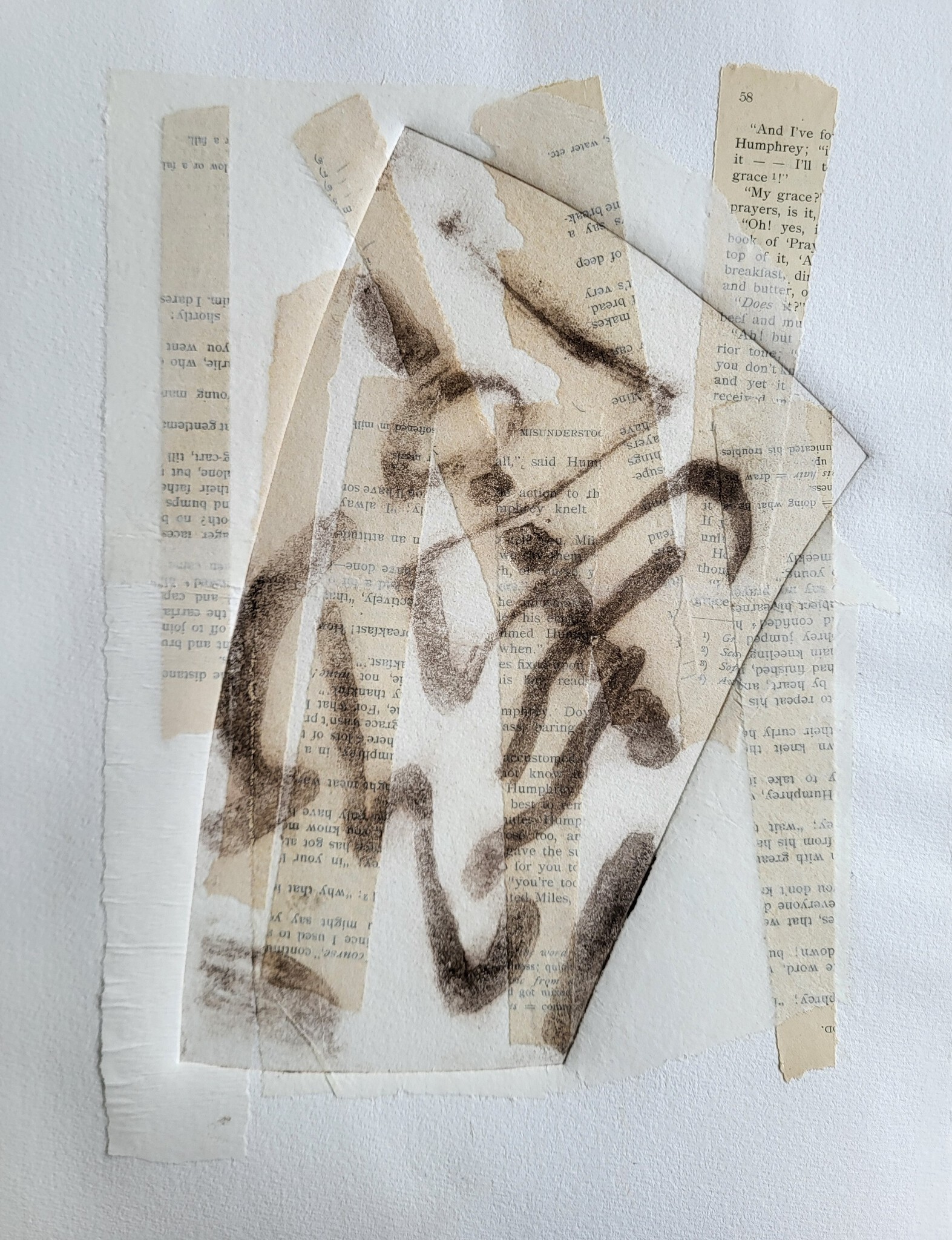 "Als het terecht is / noodt het niet tot rechtvaardiging / tenzij er sprake is / van een misverstand." (carborundum druk over collage)