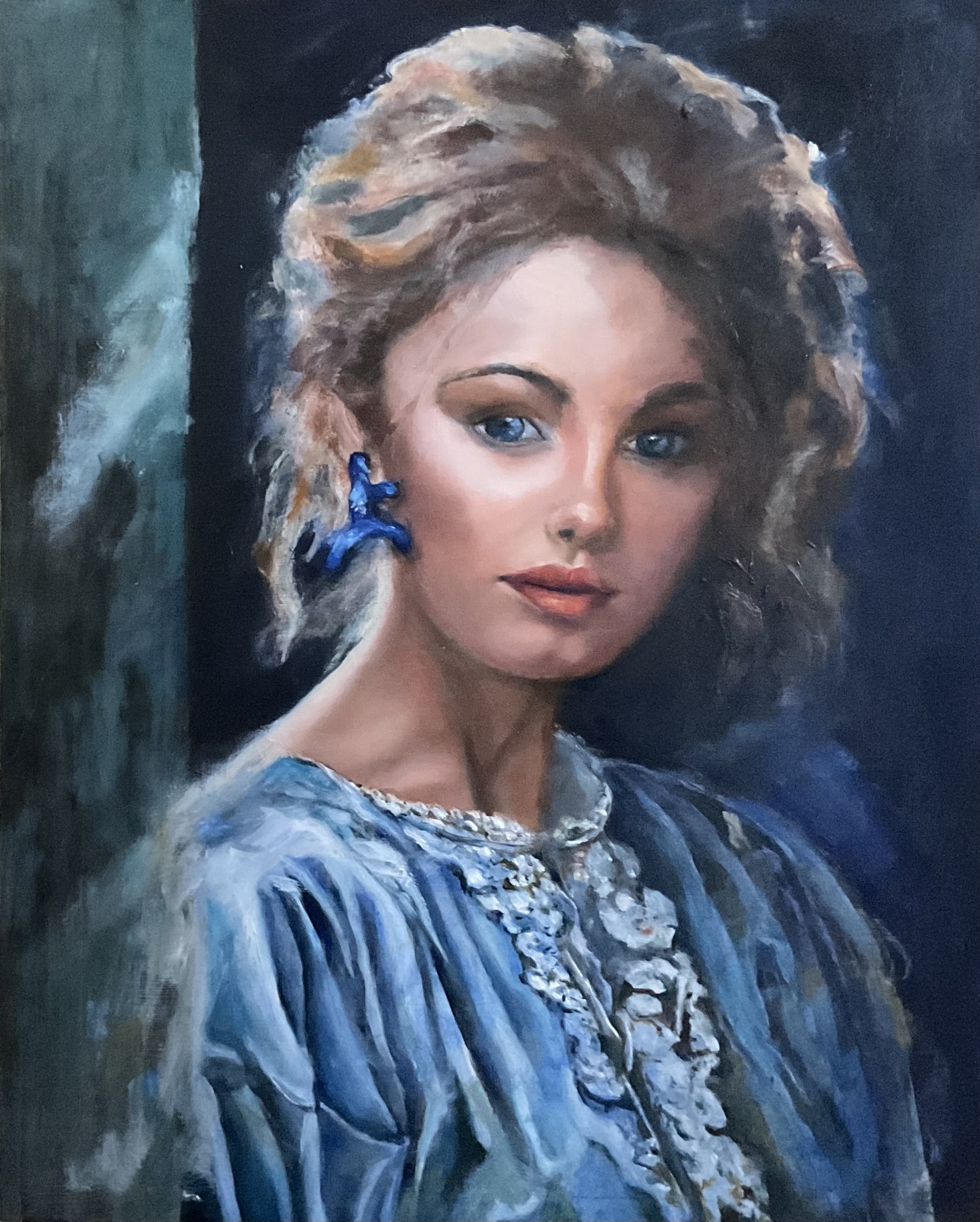 Serena belichaamt klassieke rust, maar het is de halve noot aan haar oor die haar verbindt met mijn universum — een klein, muzikaal detail dat alles herkenbaar maakt.