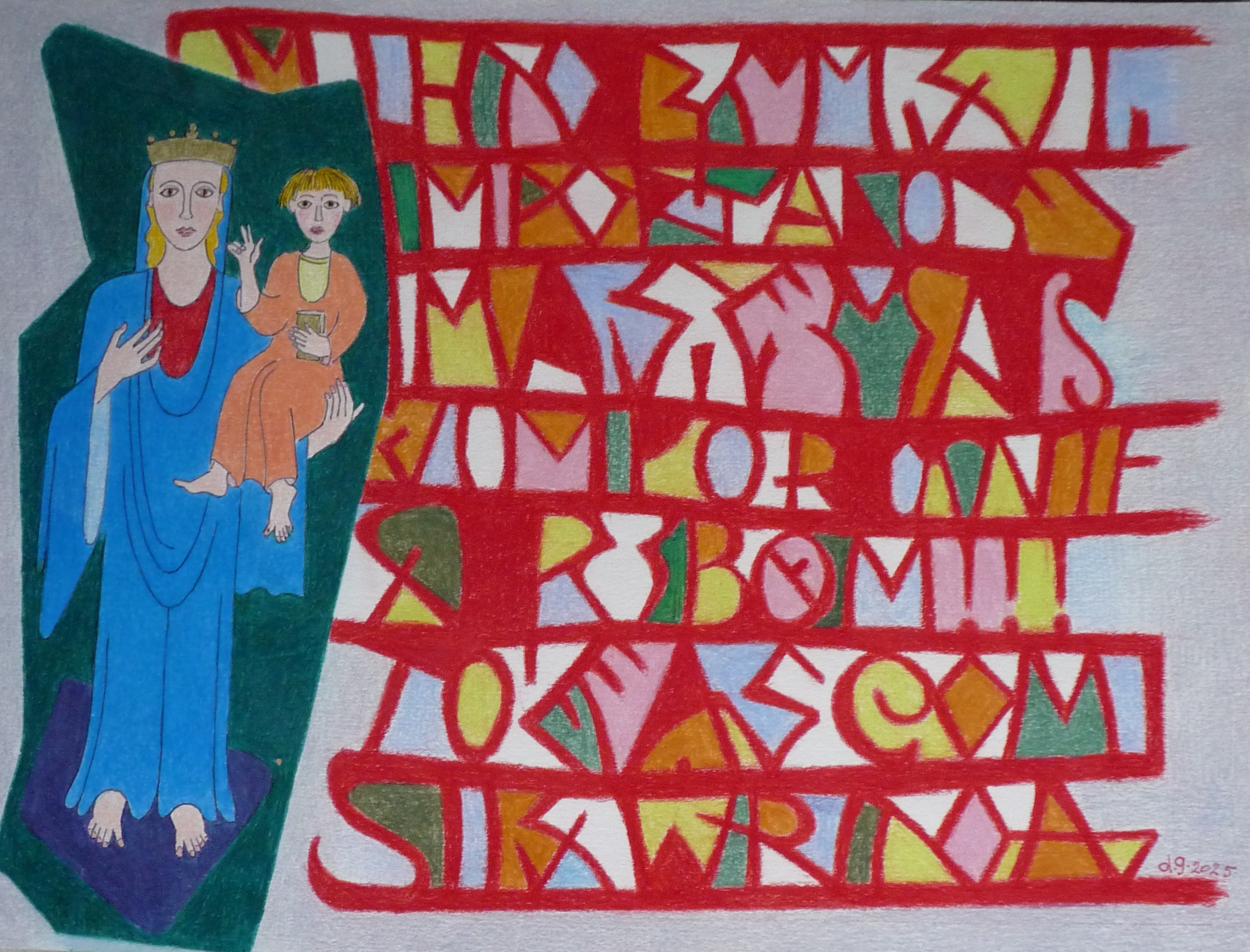Madonna 4 met kind op de arm. rode tekst.