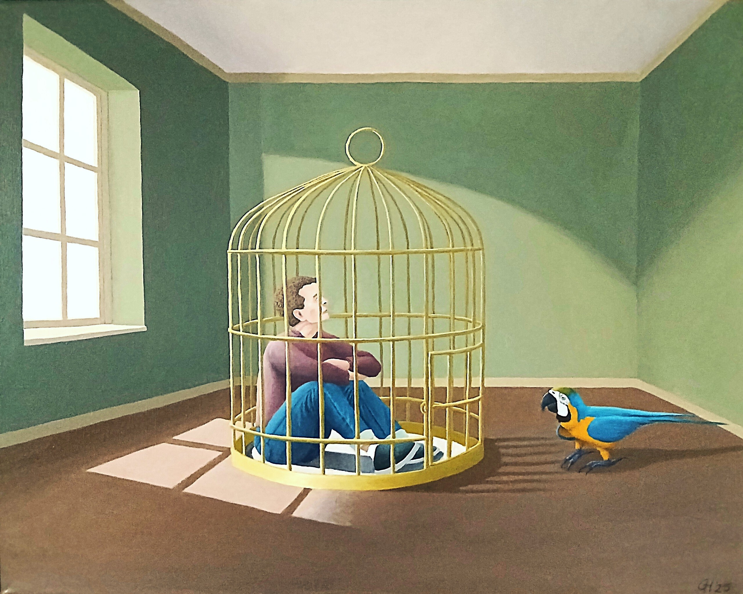 Geinspireerd door het nummer van Frans Duijts. Ik zit hier in een kooi en jij bent vrij.