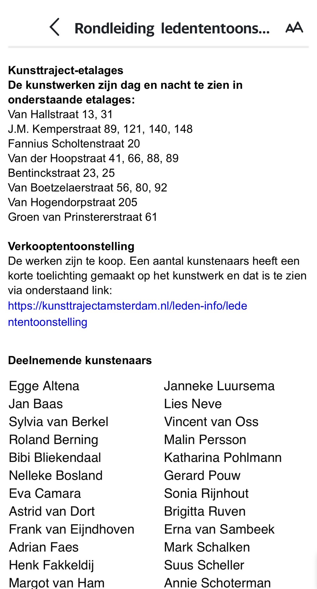 Kunstwerken van de ledententoonstelling in verschillende kunstetalages van Kunsttraject in de Staatsliedenbuurt in Amsterdam