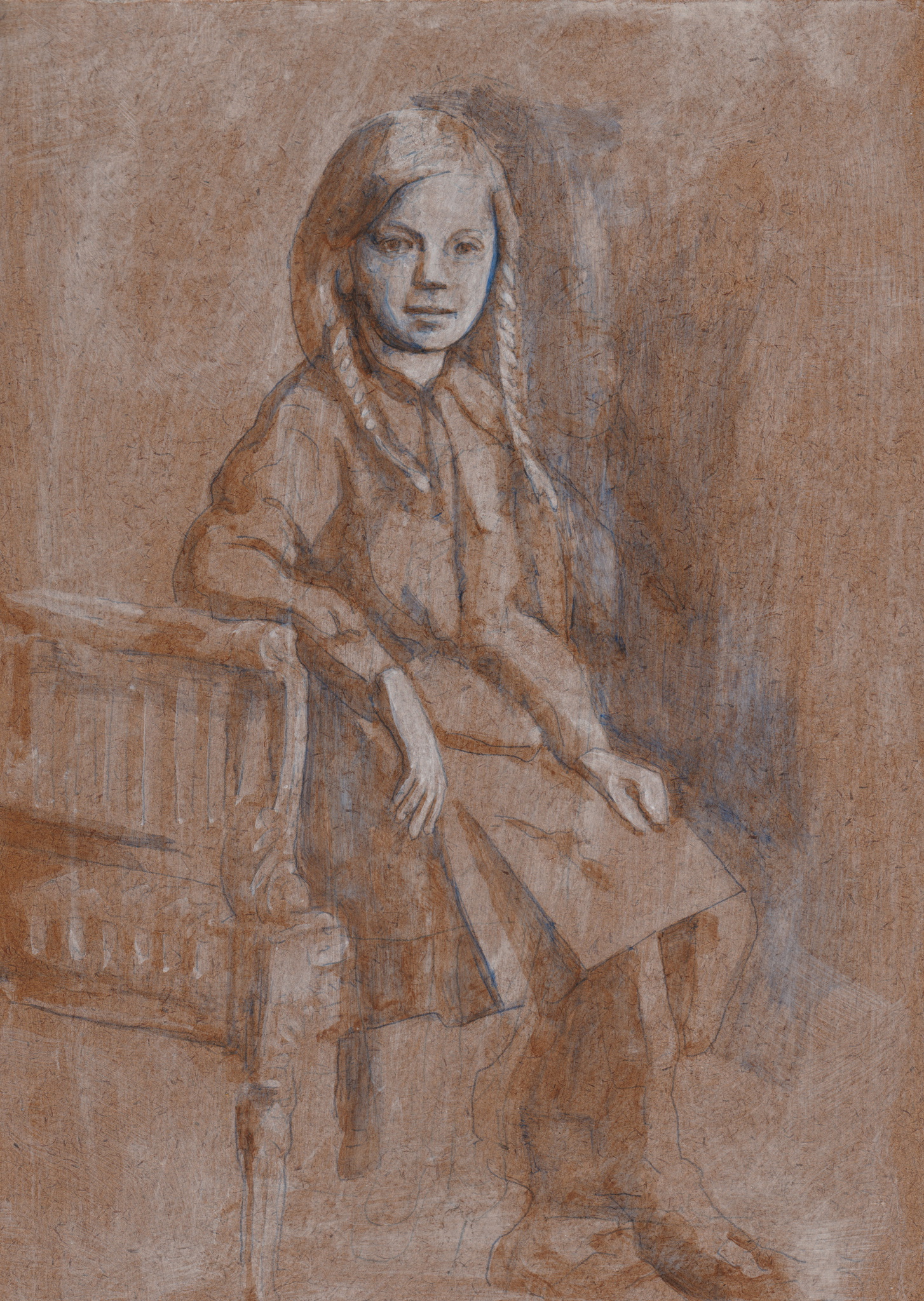 Kleine charmante werken op paneeltjes vaak A4-formaat. Portretten, bloemen, stillevens van fruit, glaasjes, doorkijken in het bos, een zicht met wachtende figuren….