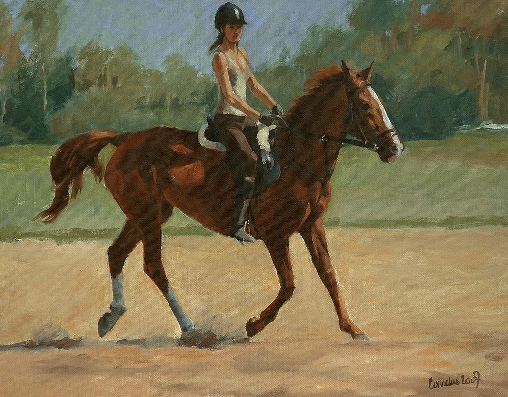 Dieren Olie Doek Op Paarden Kinderen Linnen Amazone Ruiter Manège Paardrijden