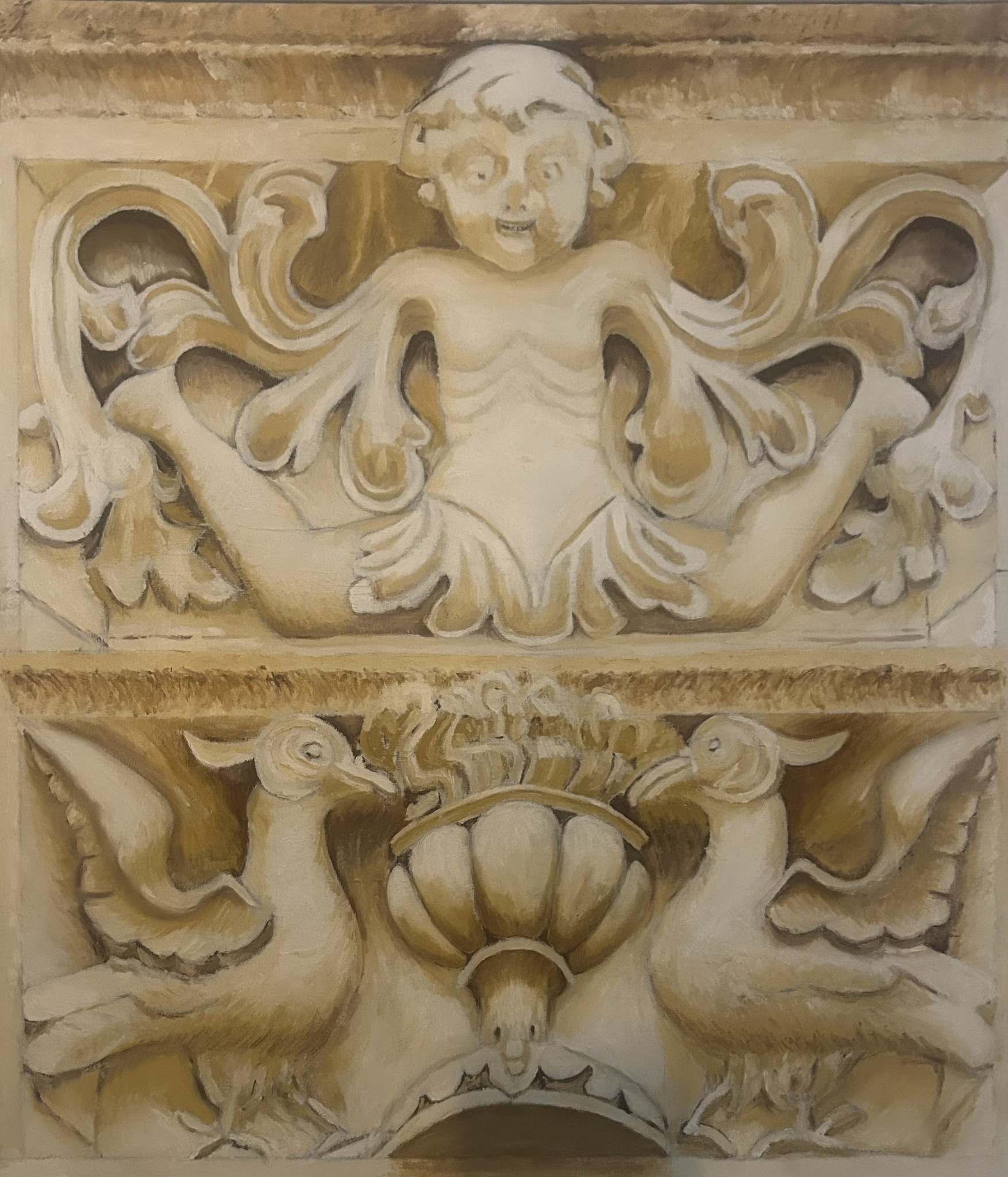 Engeltje. Aan buitenzijde grote kerk Breda middeleeuws