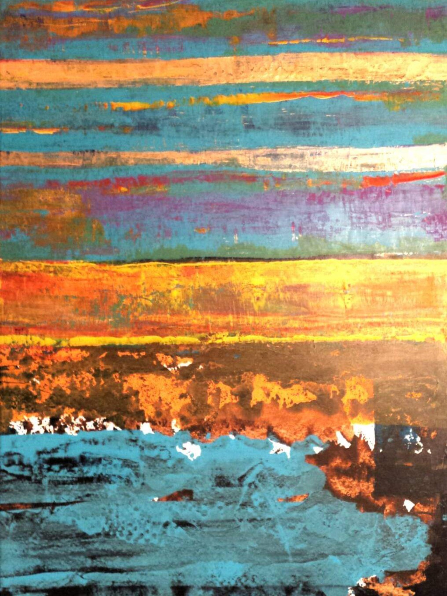 Een werk op papier. Ik heb het later ingelijst en dan komt het nog beter tot zijn recht. Ik heb hier de wissertechniek gebruikt met een beperkt kleurenpalet.