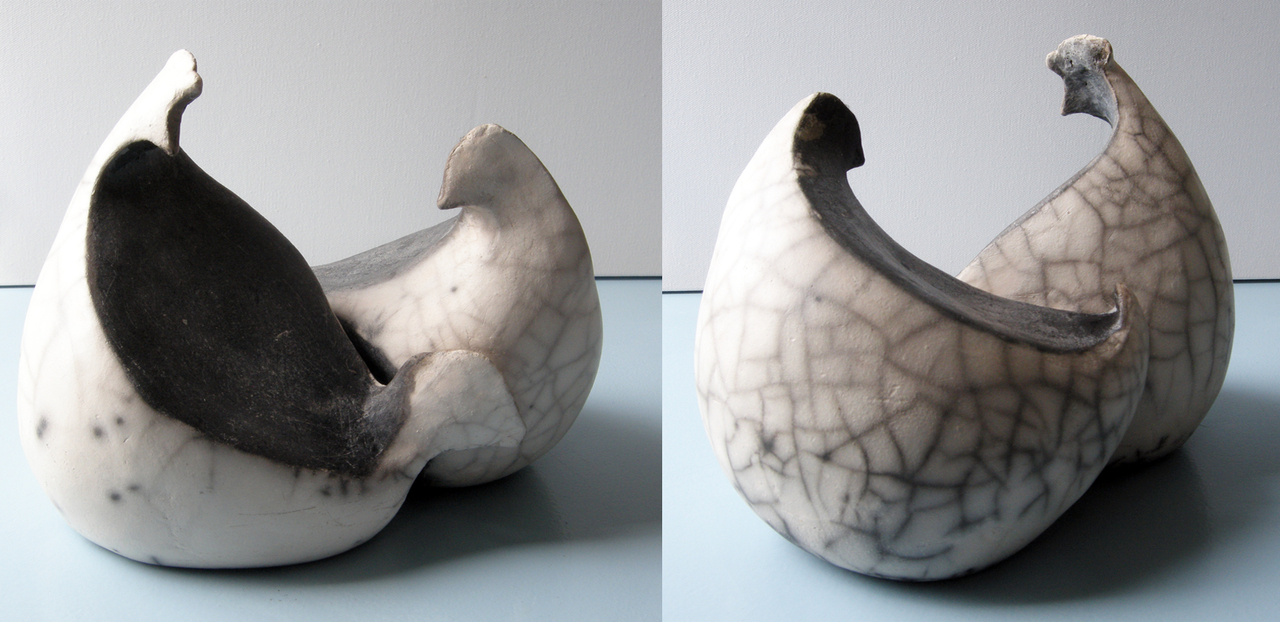 Keramiek Vogel Kip Haan Naked Raku