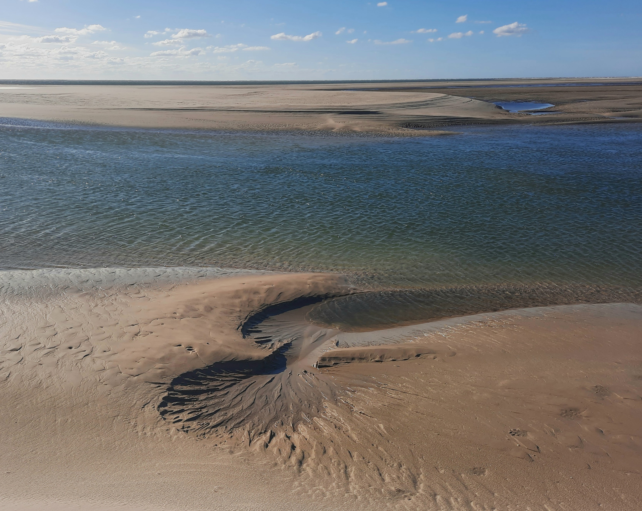 Ter hoogte van paal drie op de Noordsvaarder, Terschelling vindt een prachtig spel plaats van eb en vloedscharen.