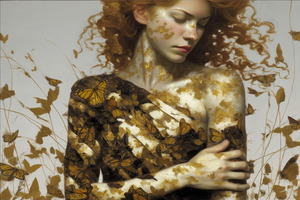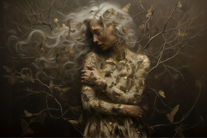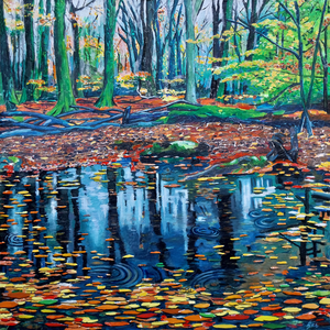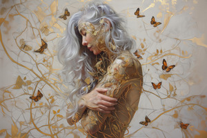 Modern figuratieve schilderijen. Symbolische vrouwenportretten in olieverf en acryl. En betoverende landschappen in collage en mixed media.