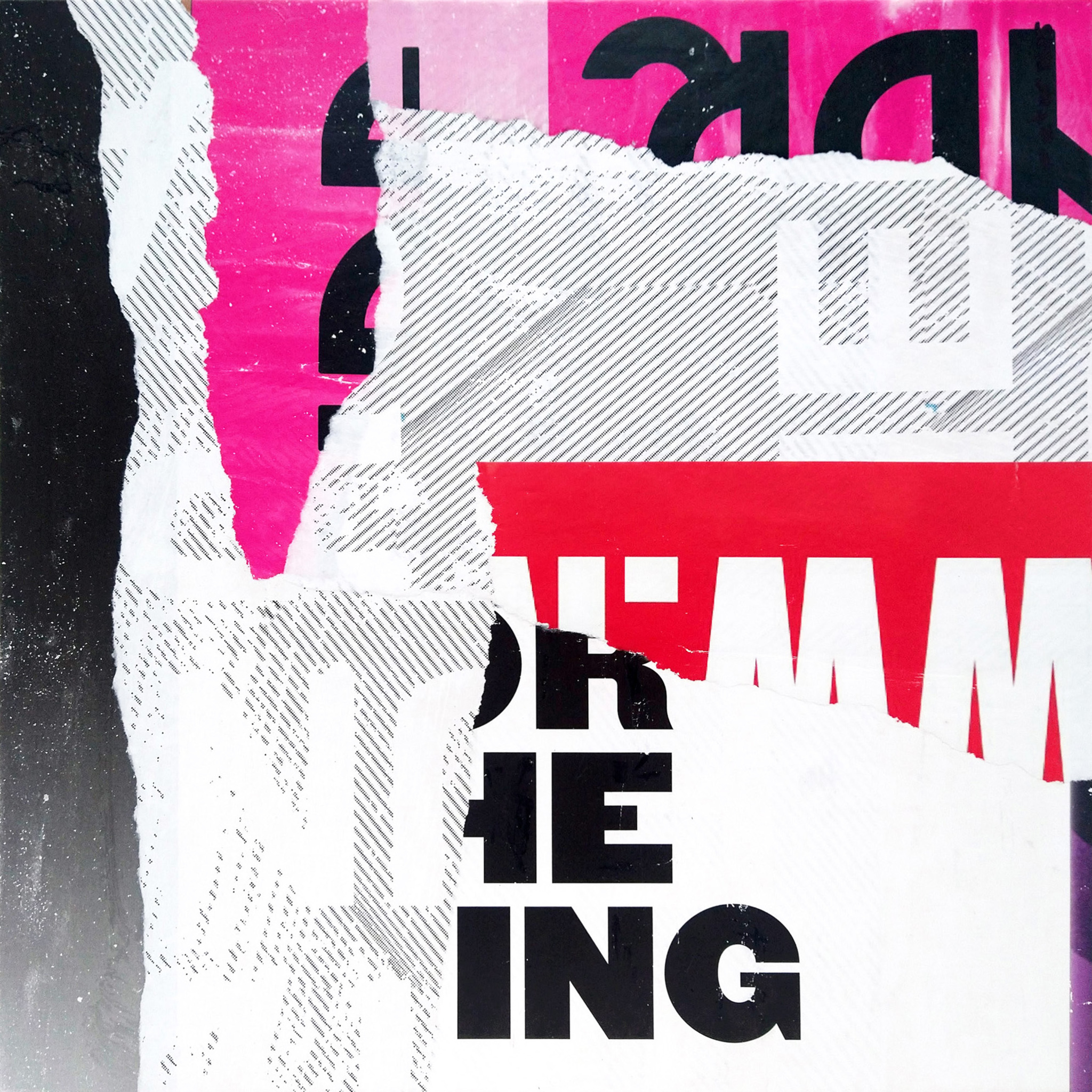 Collage Decollage Papier Kleurrijk Plakwerk Typografie Paneel Roze Rood