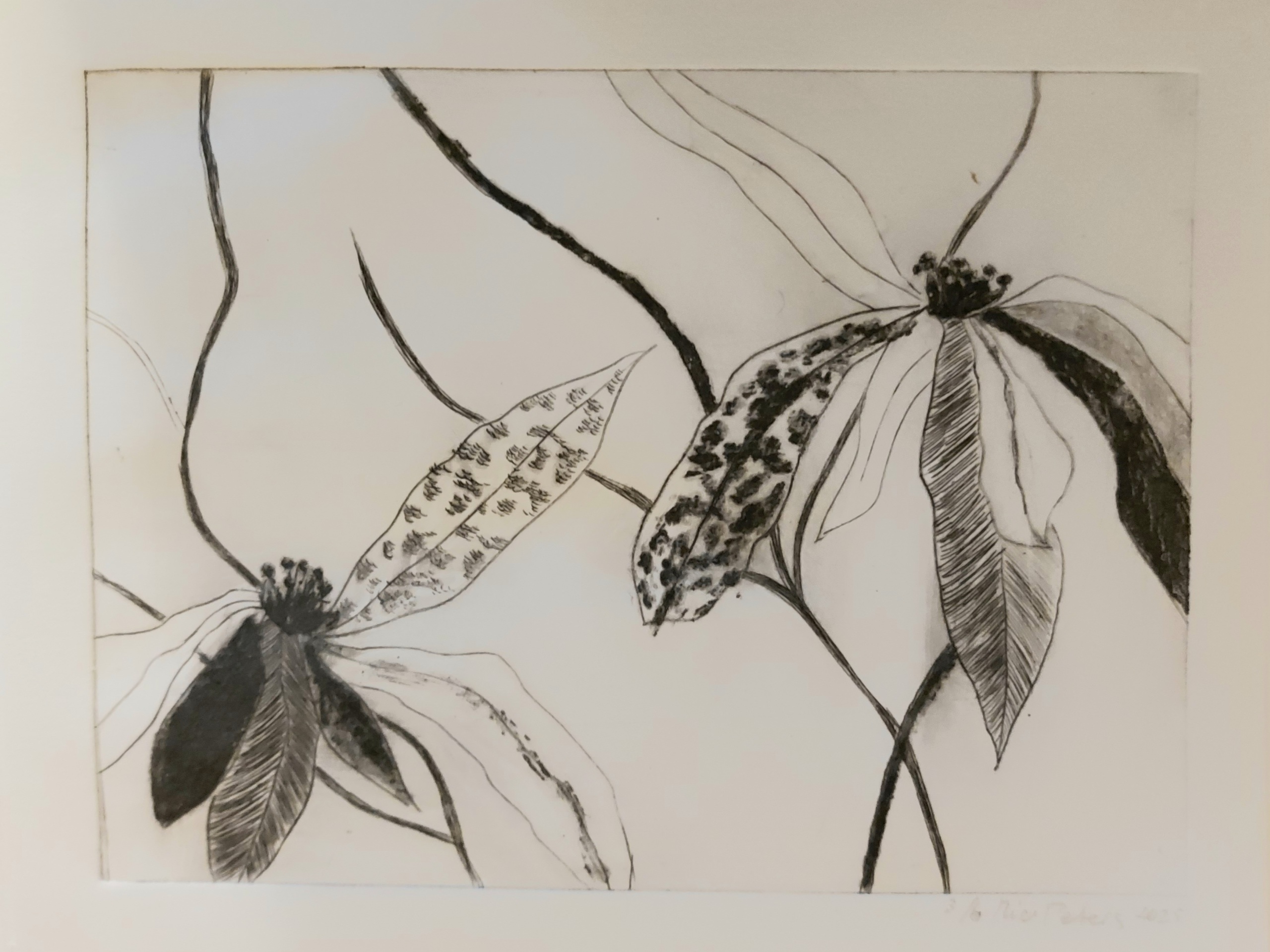 Natuur etsen van bladeren en bloemen. prijs is inclusief lijst.