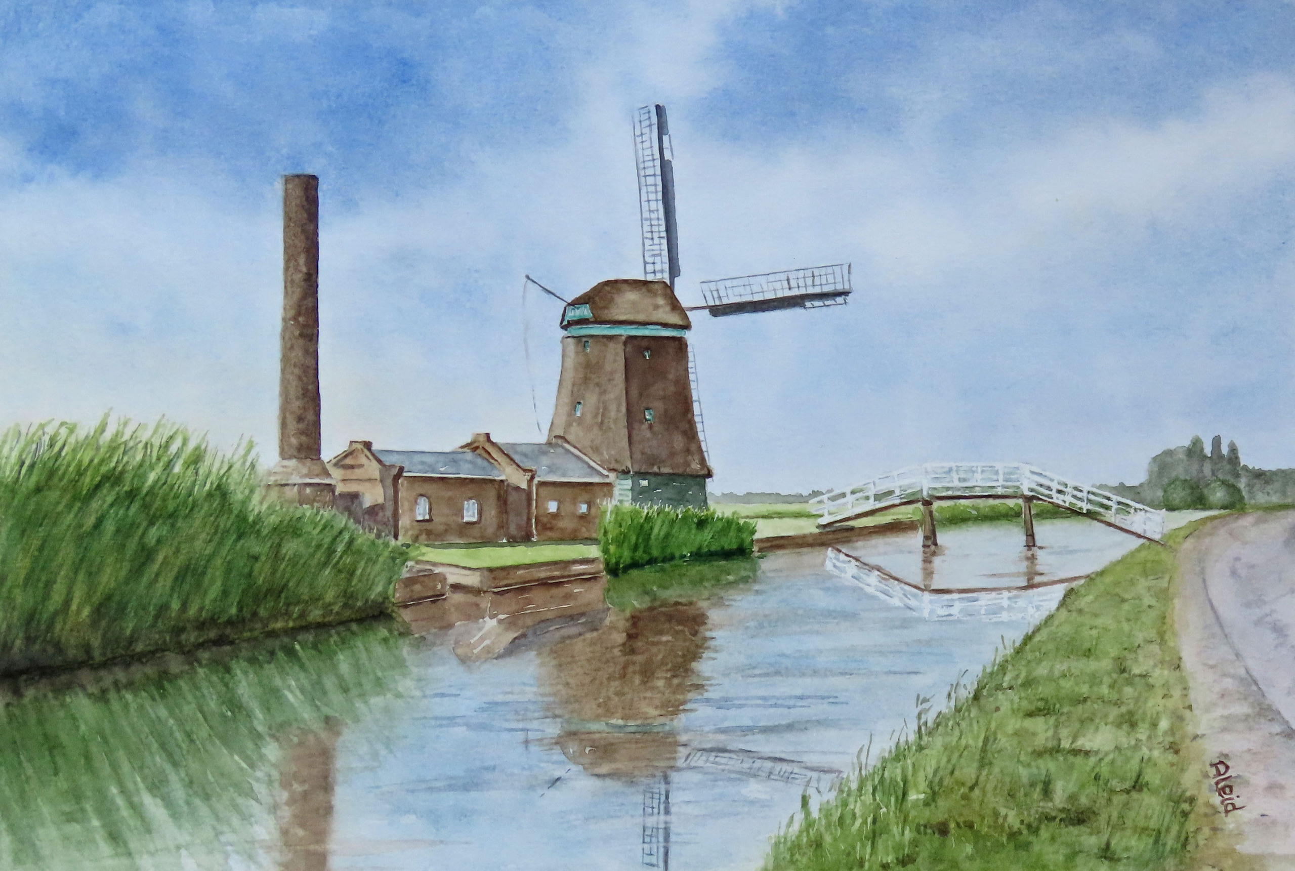 Aquarel Molen Noordholland Opmeer