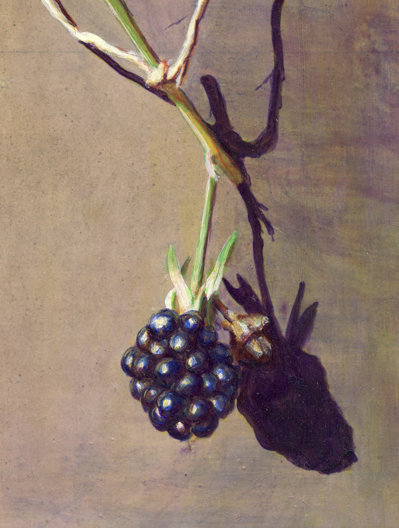 Kleine charmante werken op paneeltjes vaak A4-formaat. Portretten, bloemen, stillevens van fruit, glaasjes, doorkijken in het bos, een zicht met wachtende figuren….