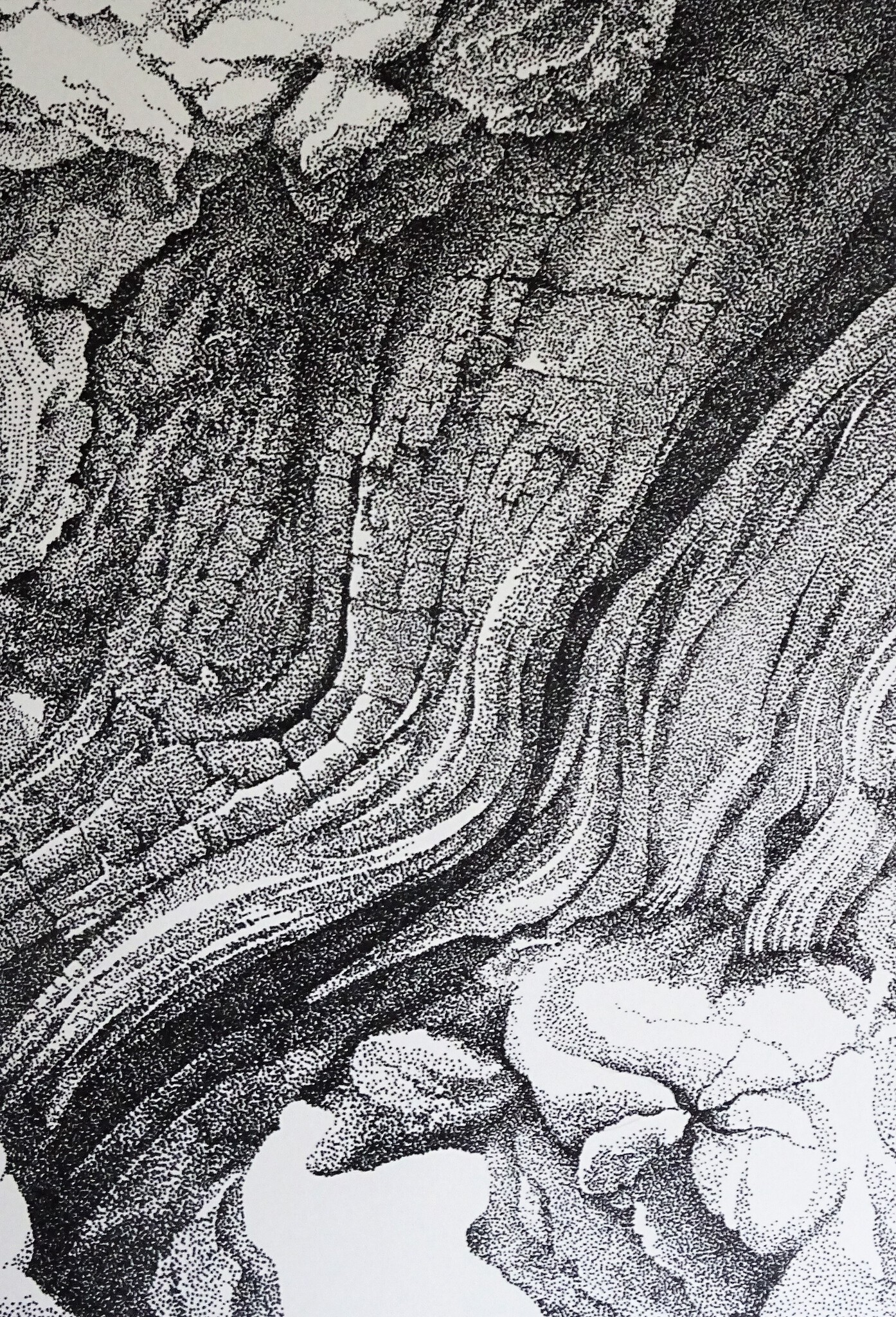 Maakt voornamelijk landschapselementen met voornamelijk bomen als thema en inkt en kleurpapier