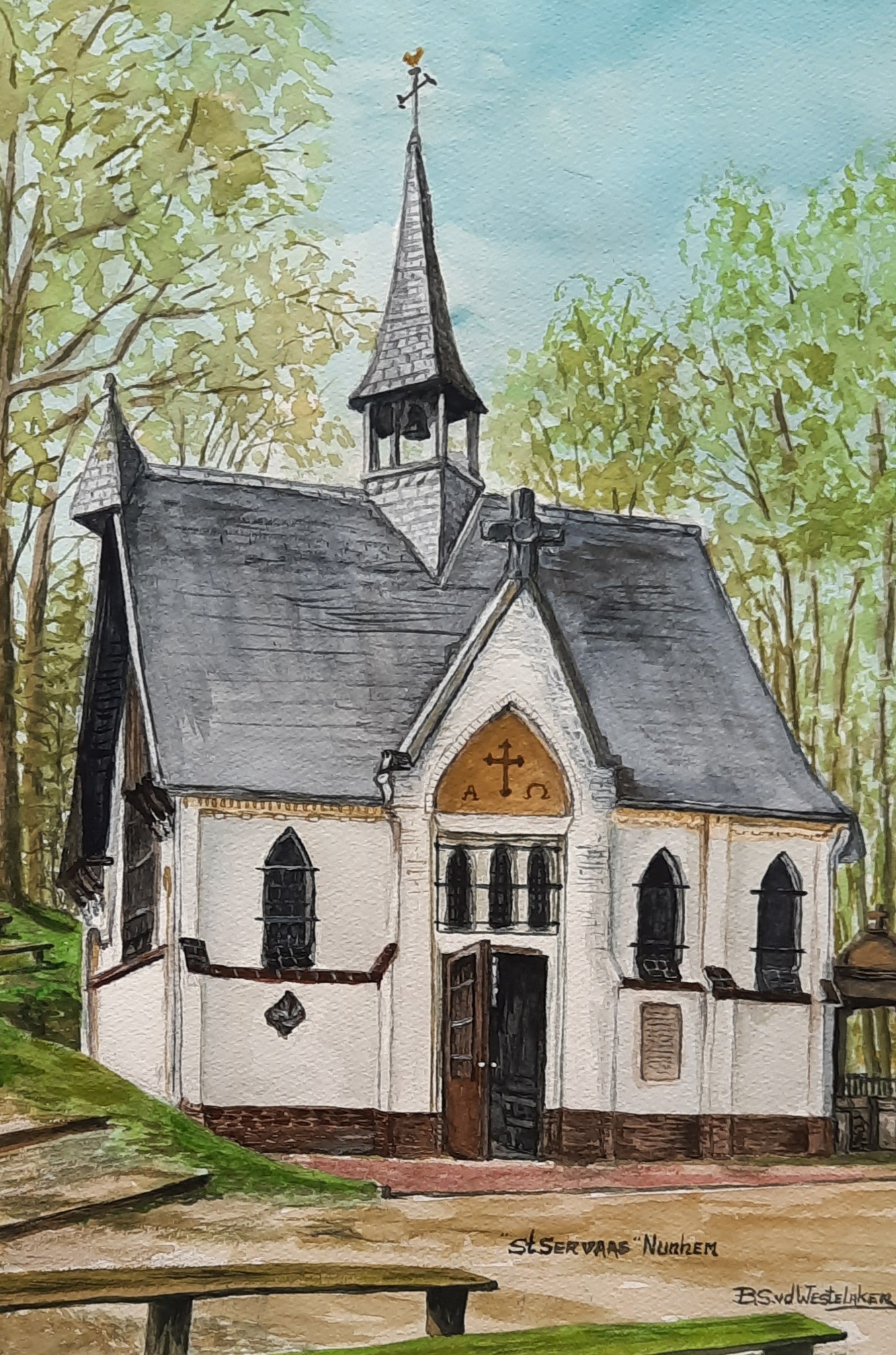 Kapel St Servaas in Nunhem. Met passe-partout waarop enkele details zijn doorgeschilderd.