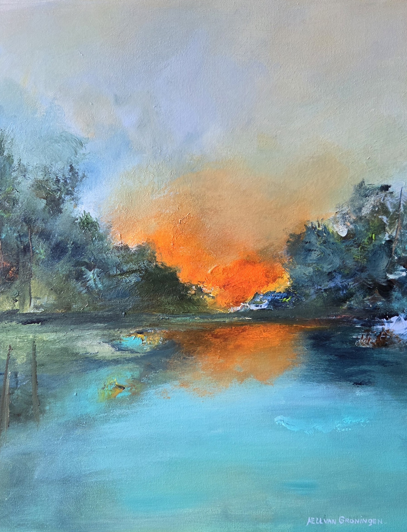 Zonsondergang Natuur Abstraherend Acrylwerk