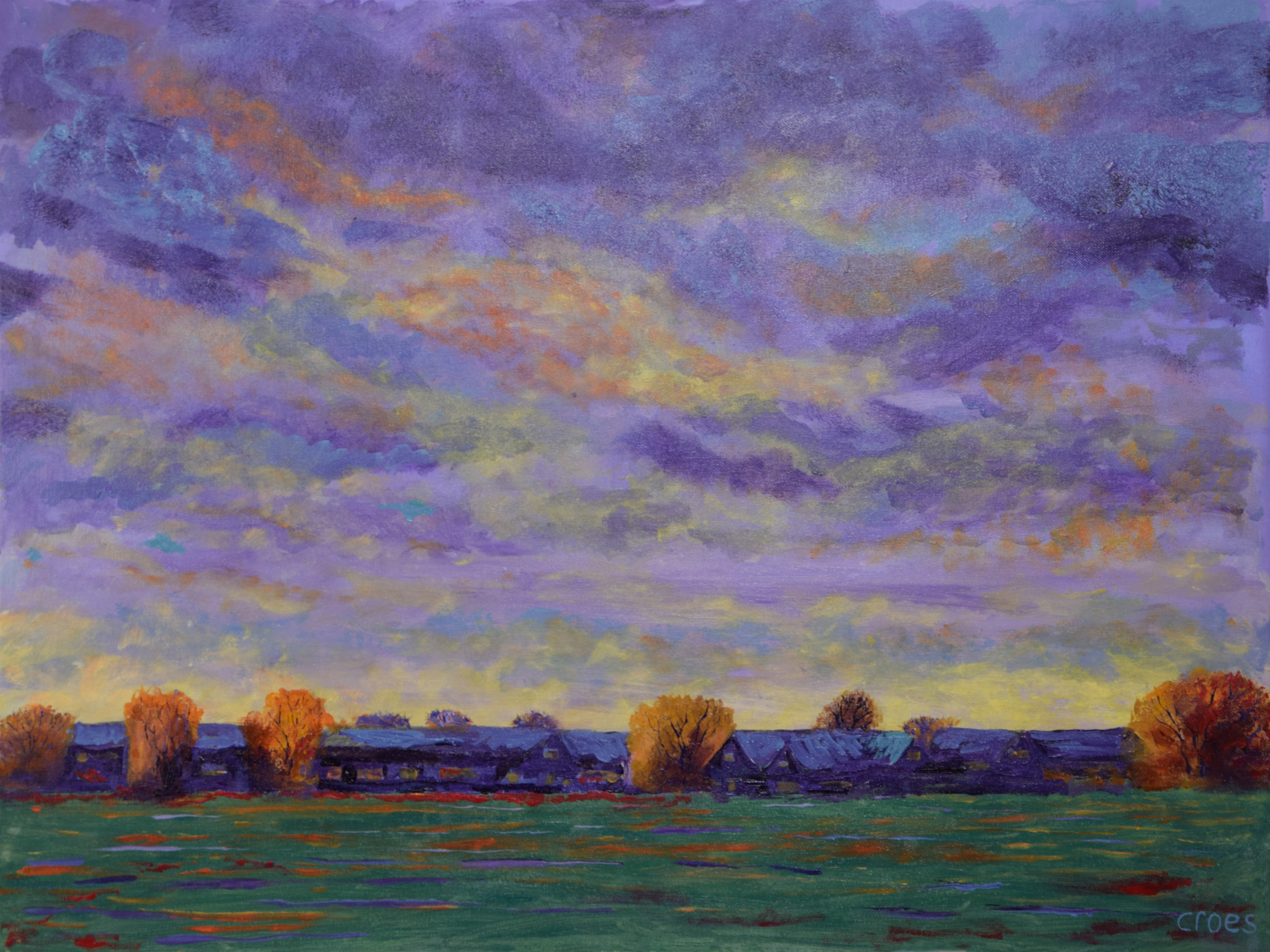 Geïnspireerd door een kleurrijke wolkenpartij die Het Baarnse Eemdal in sfeervolle avondstemming brengt