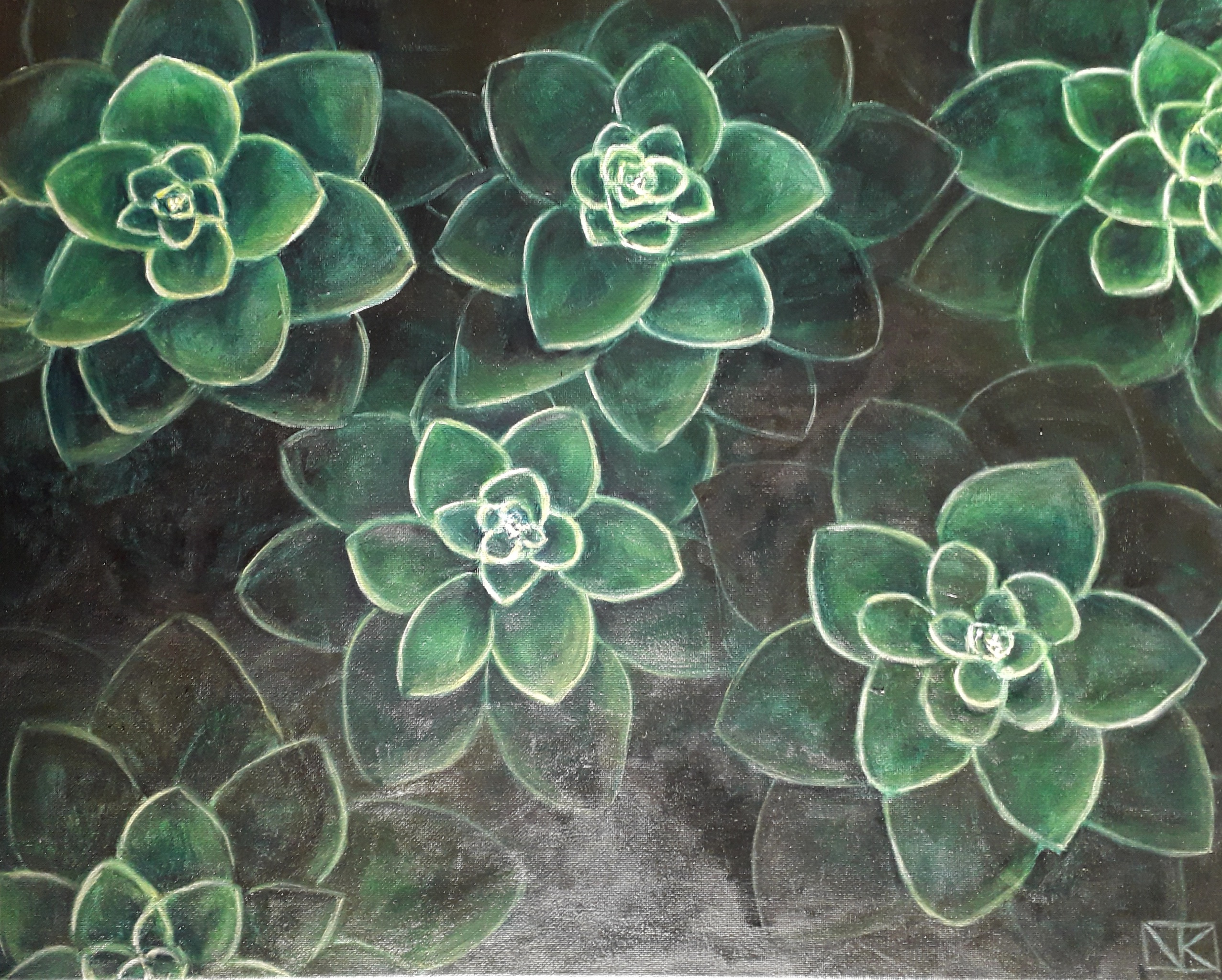 Schilderij Olieverf Vetplantje Groen Vet